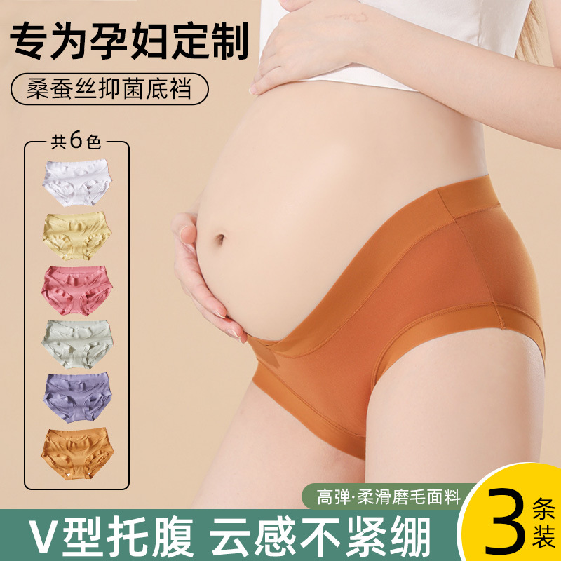 Шелковые трусы для беременных 7А с антибактериальным эффектом, низкая посадка, поддержка живота, большие размеры, высокая эластичность, дышащие трусы для беременных