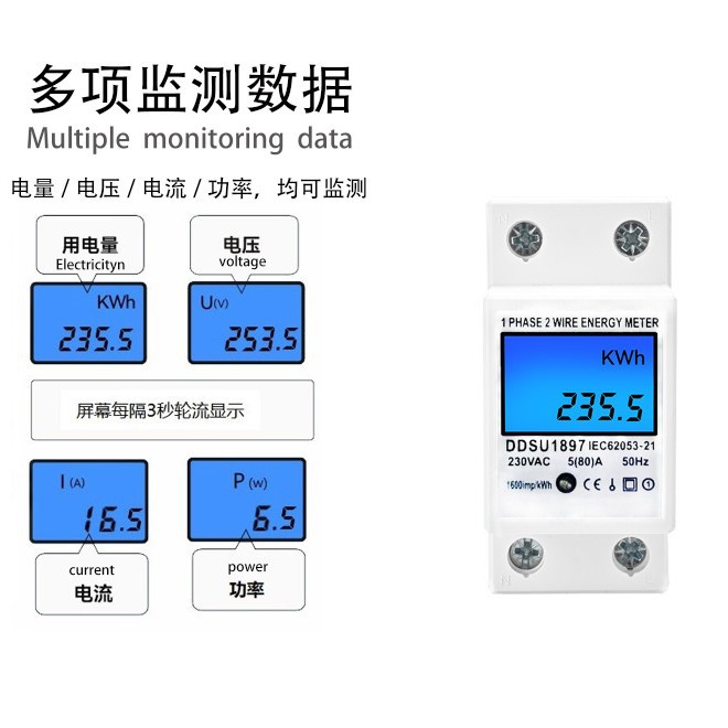 2p метр Английский Внешняя торговля Экспорт DDSU1897 однофазный рельсовый счетчик электроэнергии Многофункциональный счетчик 220V230V