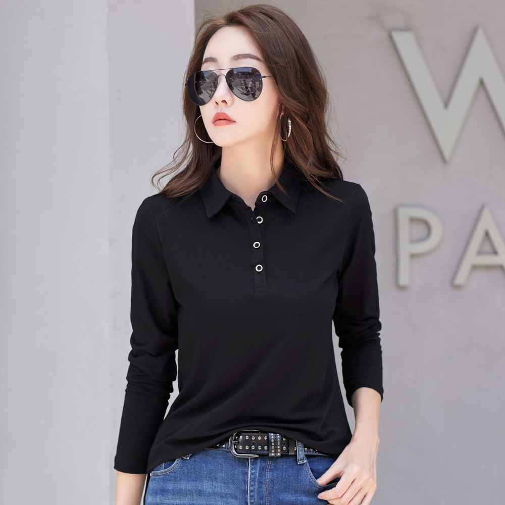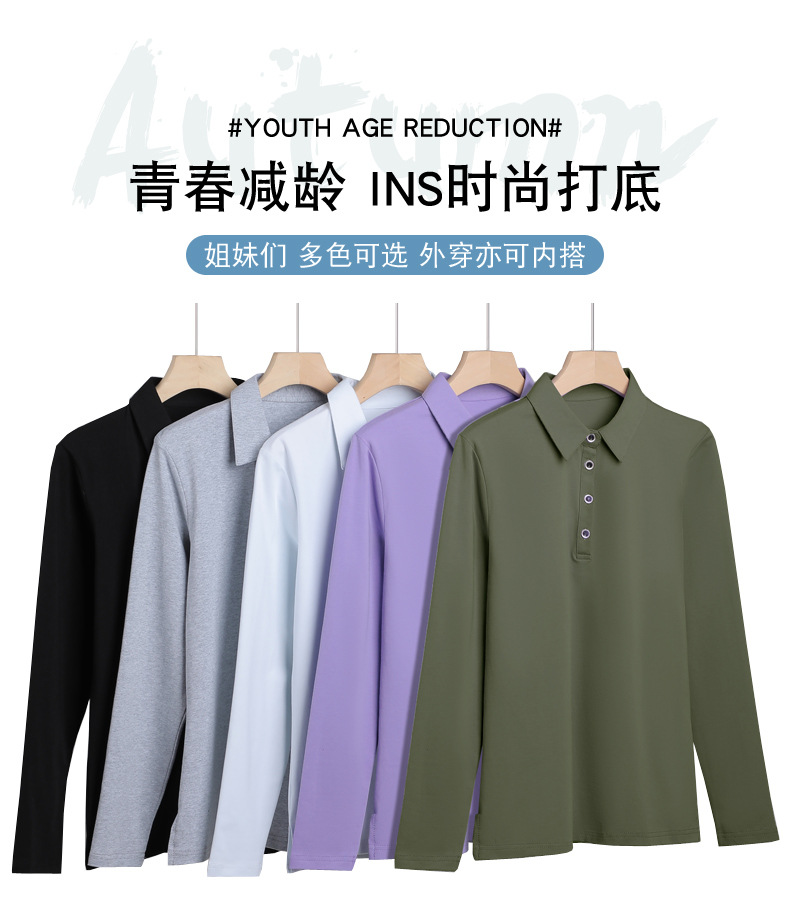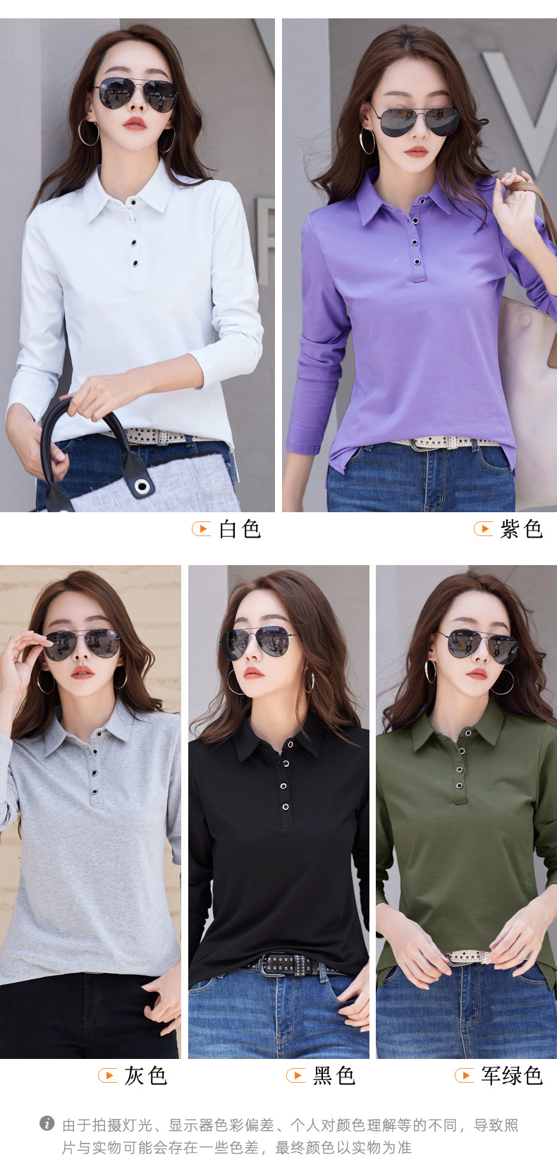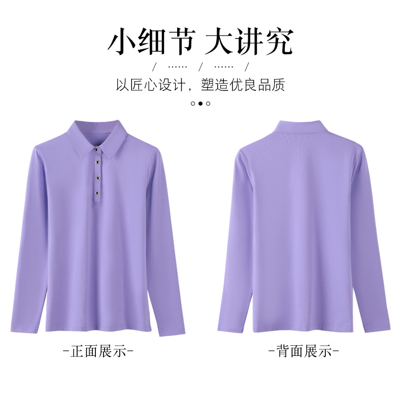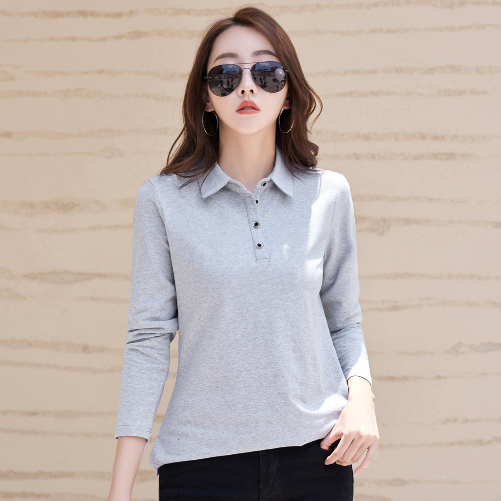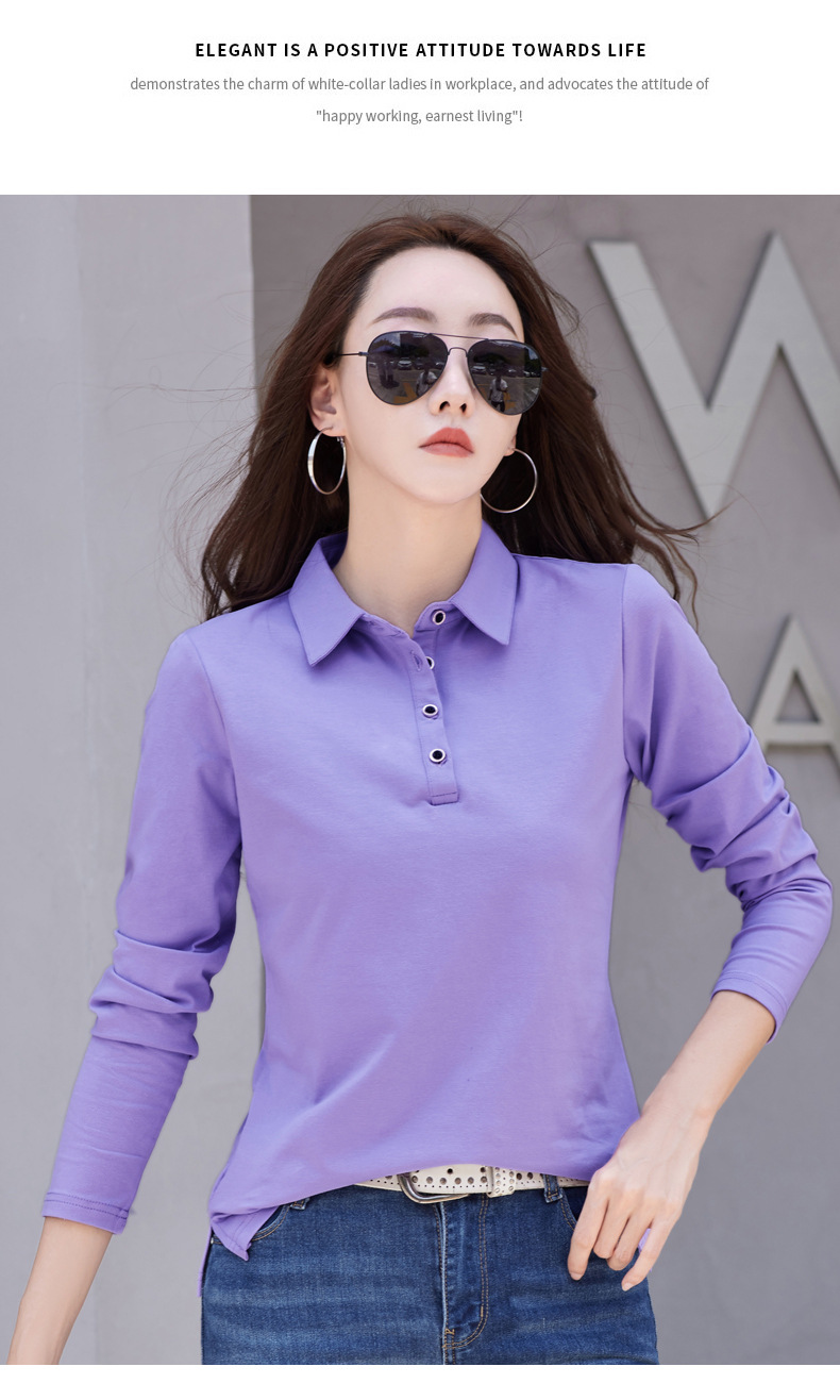 Футболка с длинными рукавами с отворотами из поколения в поколение женская корейская версия хлопчатобумажной простой пуговицы тонкая рубашка поло дикая фиолетовая женская одежда