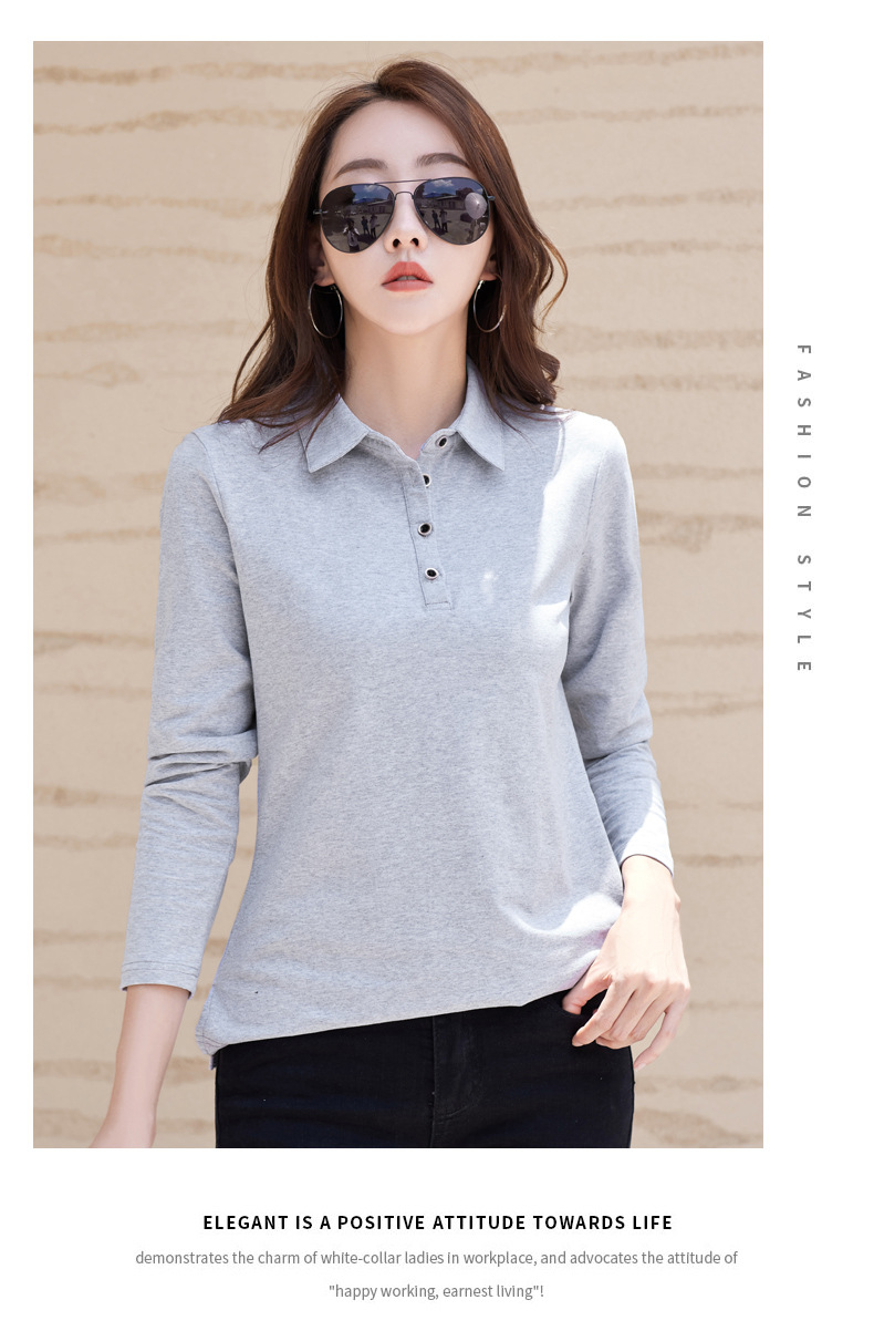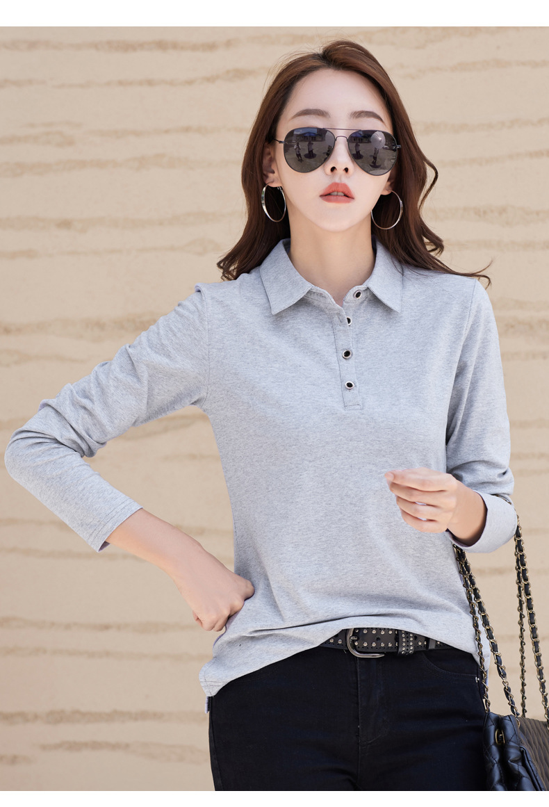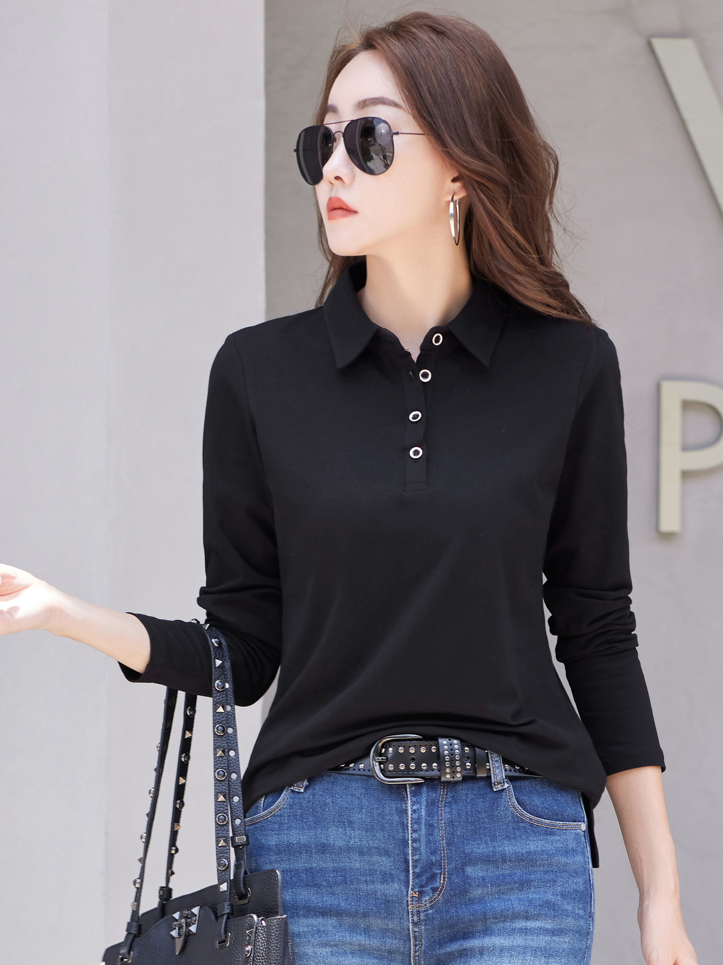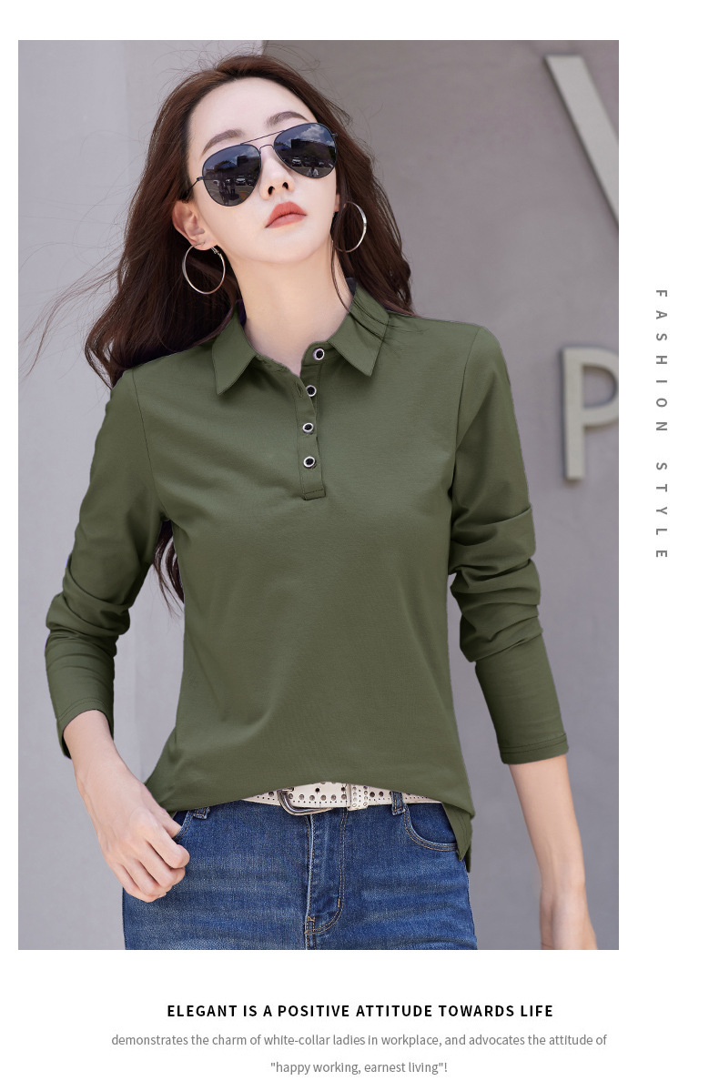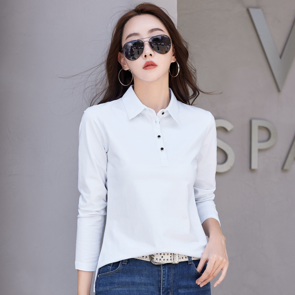 Футболка с длинными рукавами с отворотами из поколения в поколение женская корейская версия хлопчатобумажной простой пуговицы тонкая рубашка поло дикая фиолетовая женская одежда