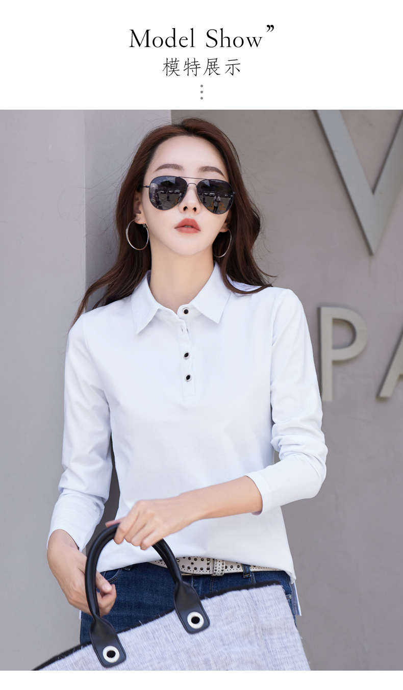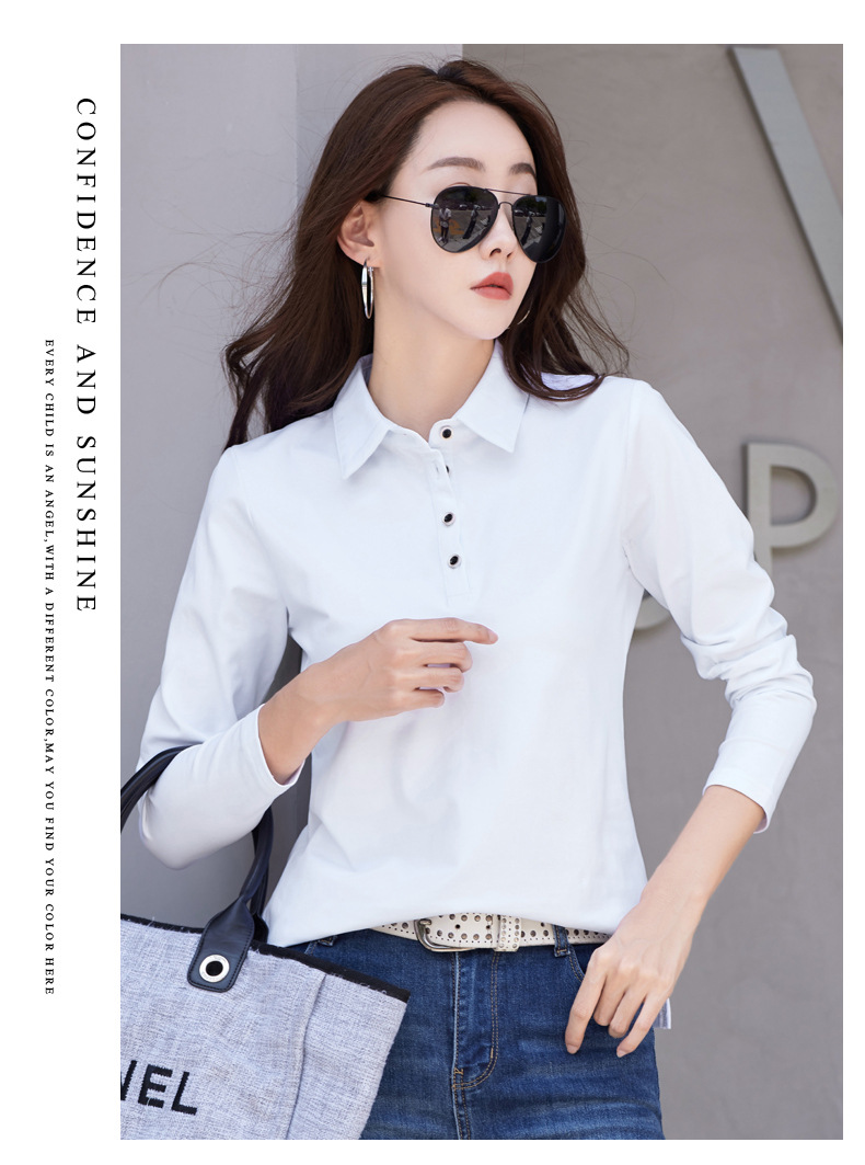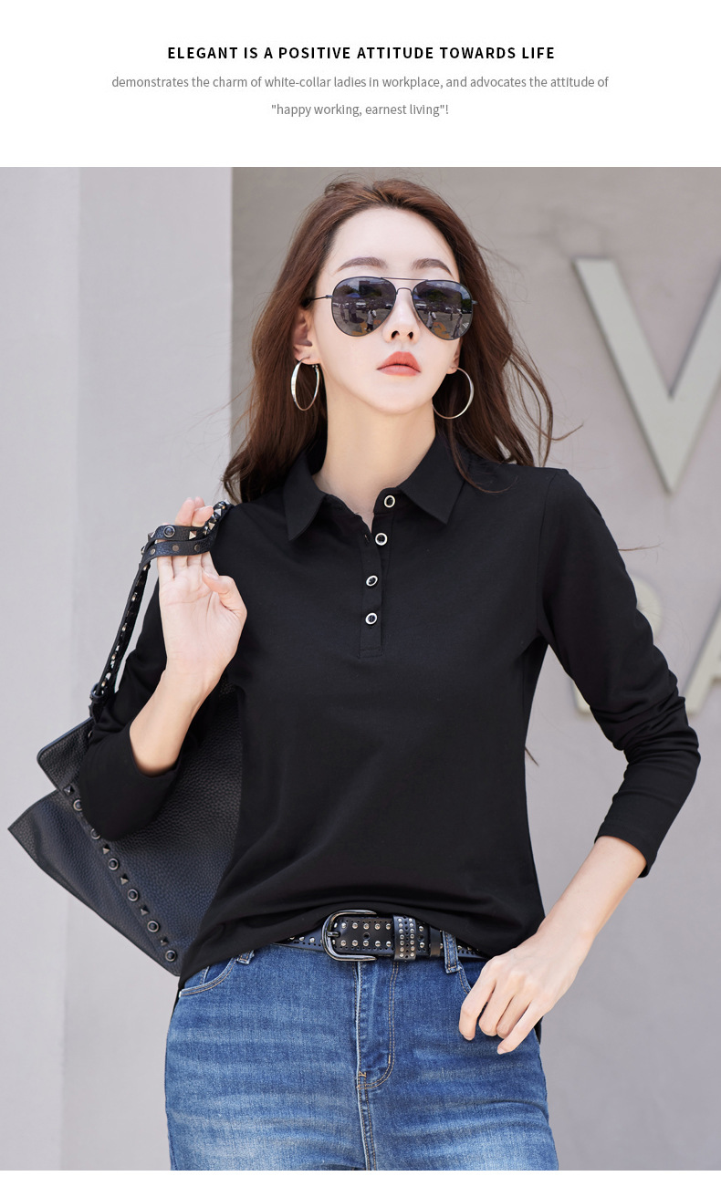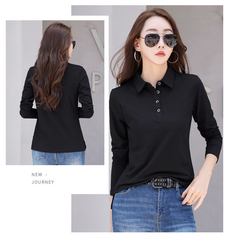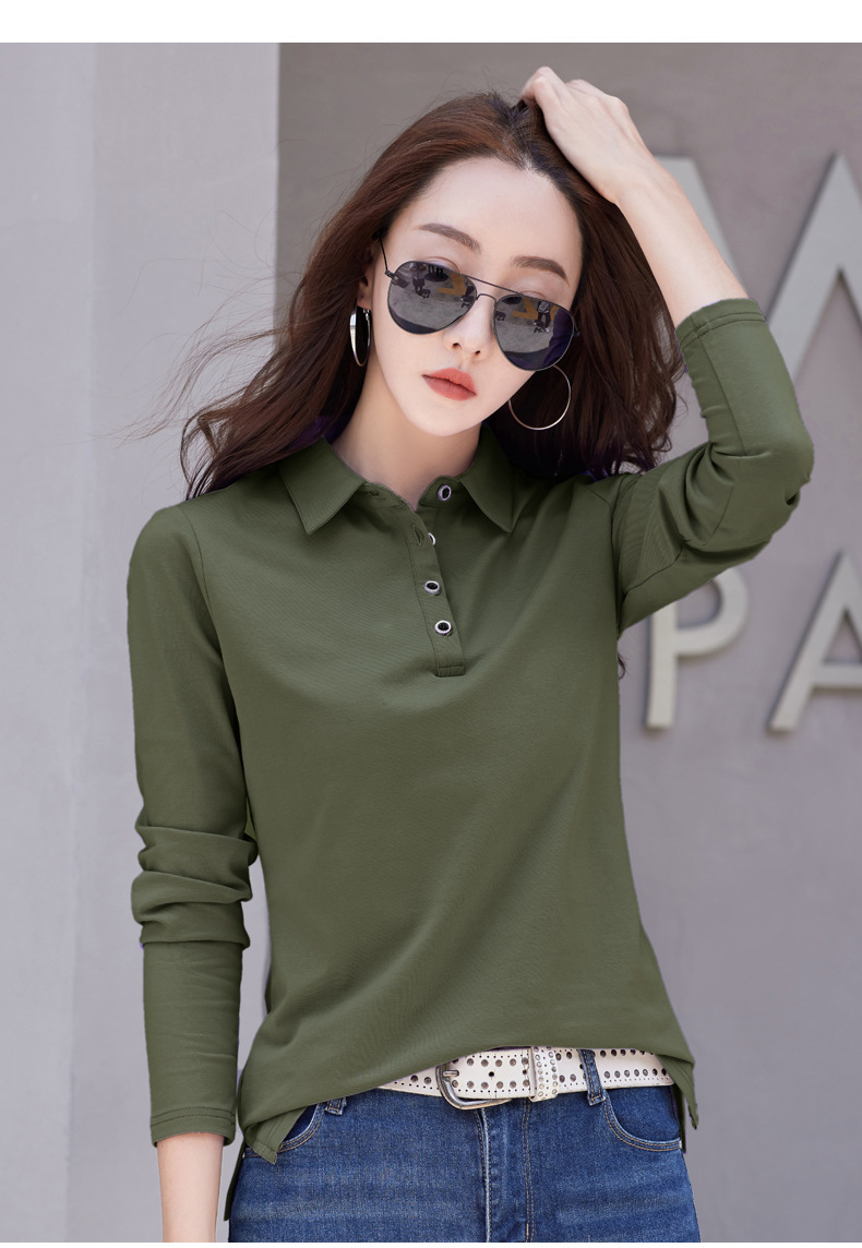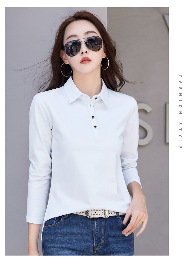 Футболка с длинными рукавами с отворотами из поколения в поколение женская корейская версия хлопчатобумажной простой пуговицы тонкая рубашка поло дикая фиолетовая женская одежда