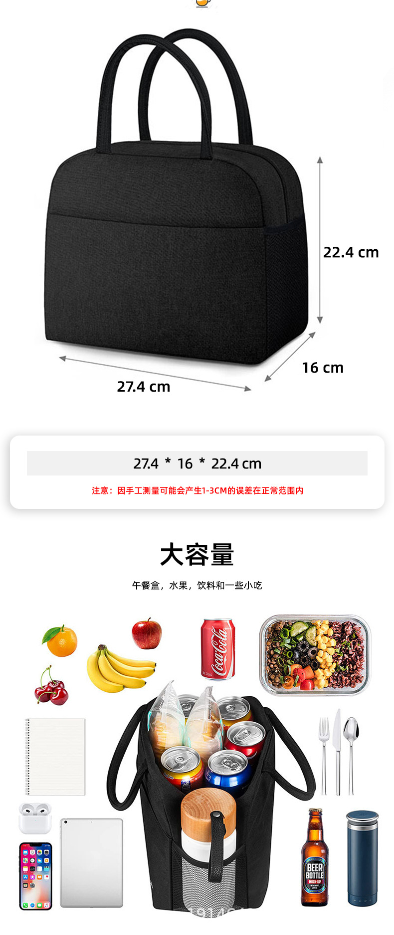 Amazon Горячая Распродажа Большой Емкости Водонепроницаемый Студенческий Бенто Обед Портативный Черный Охлаждающий Мешок Портативная Изоляционная Сумка Из Алюминиевой Фольги