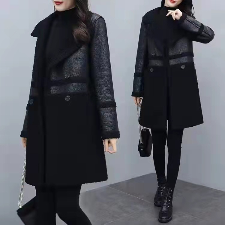 Вся сеть недорогой зимой средней и длинной шерсти утолщенные воротники носить свободную кожаную куртку PU для женского отдыха