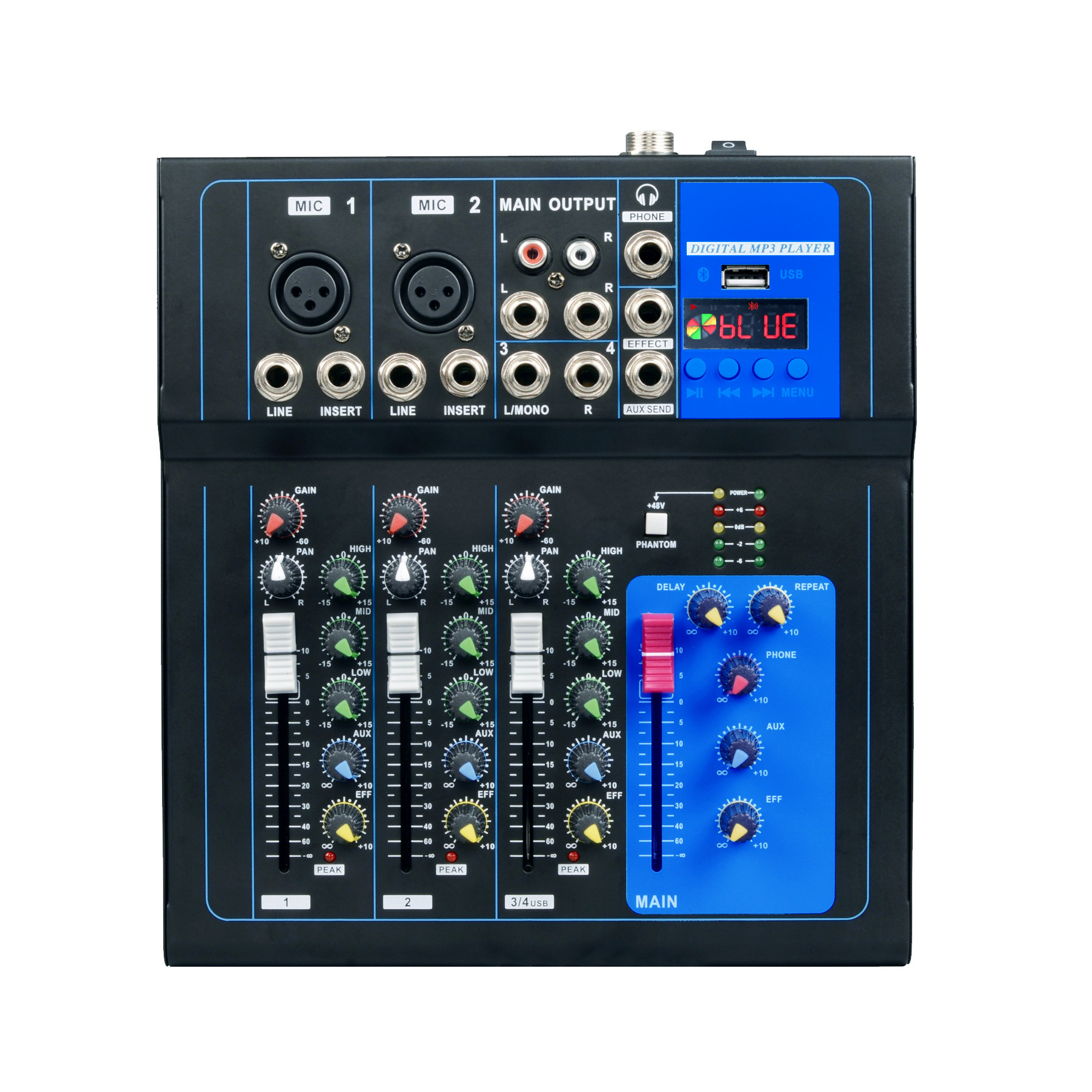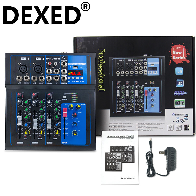 17В профессиональный 4-канальный микшерный пульт для пения, компьютера, домашних встреч, вечеринок, с эффектами