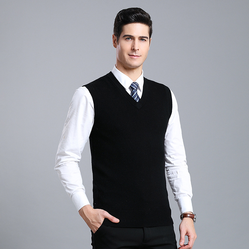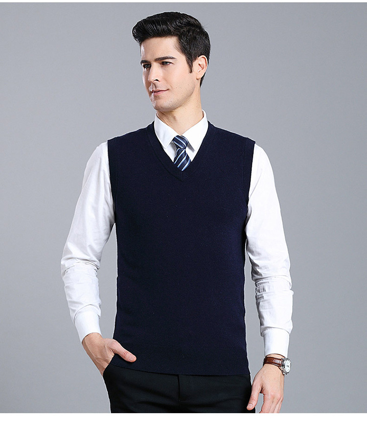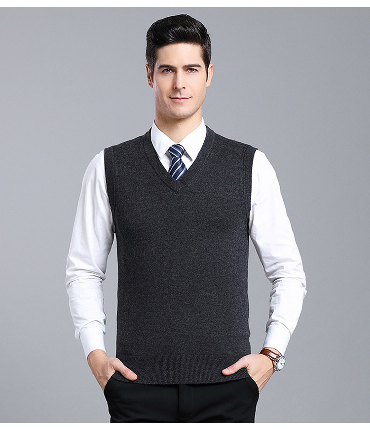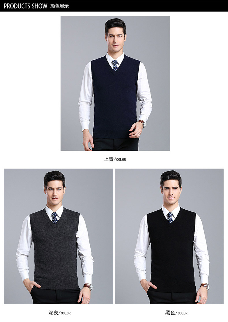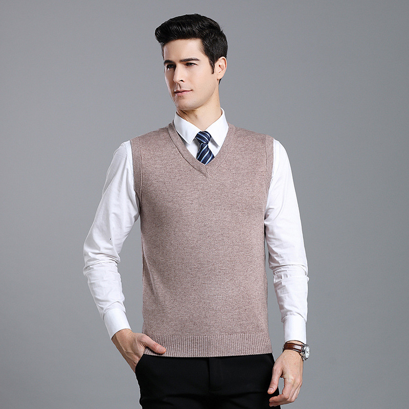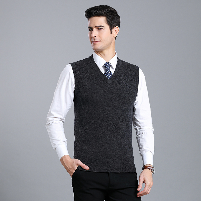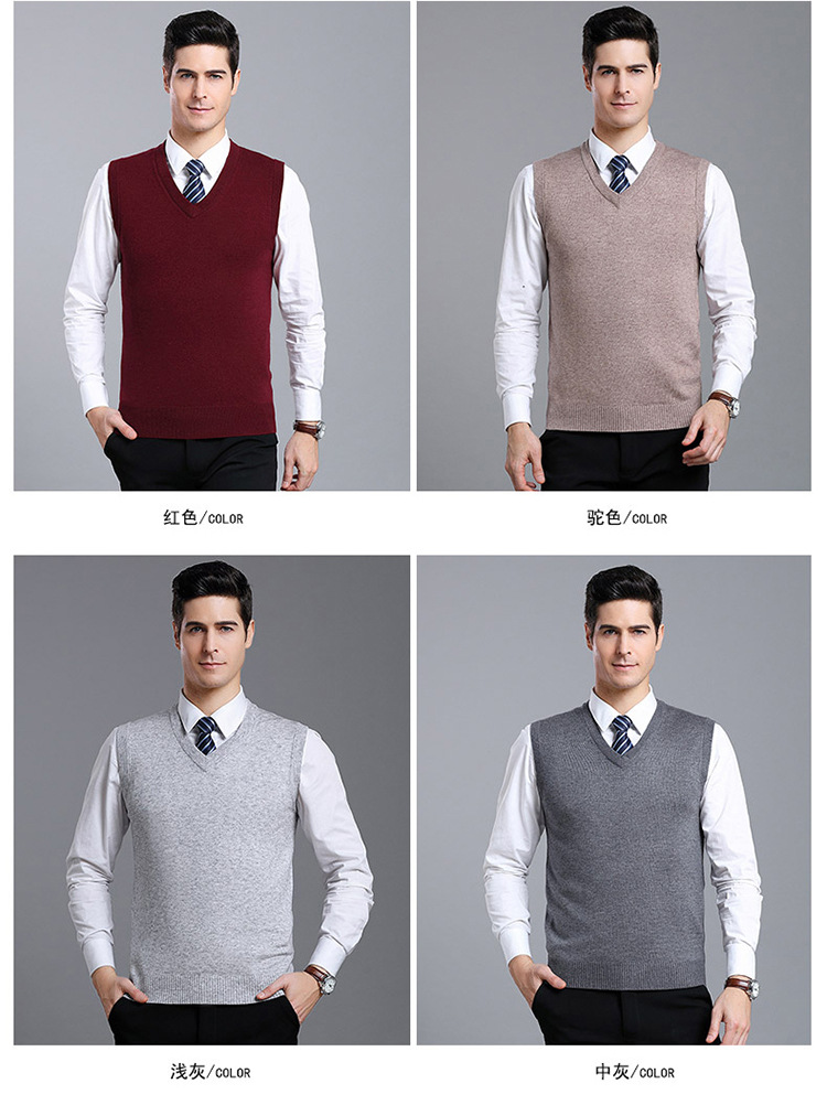 Оптовый Новый однотонный шерстяной жилет мужской V-образный вырез пожилой осенне-зимний шерстяной свитер нижний жилет мужской жилет
