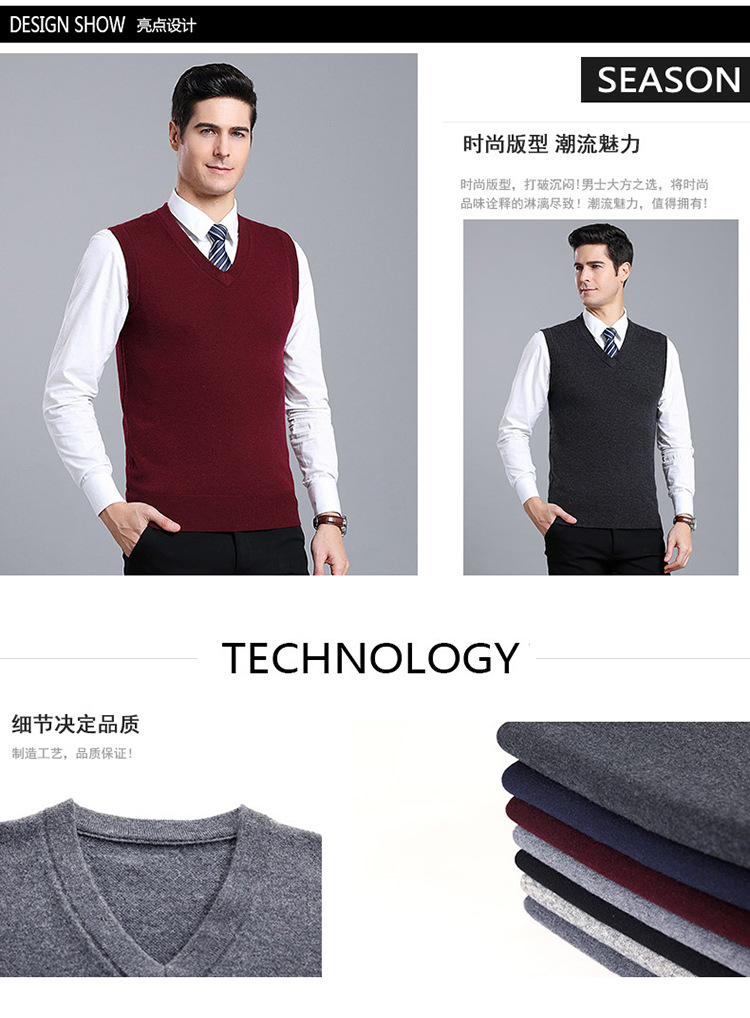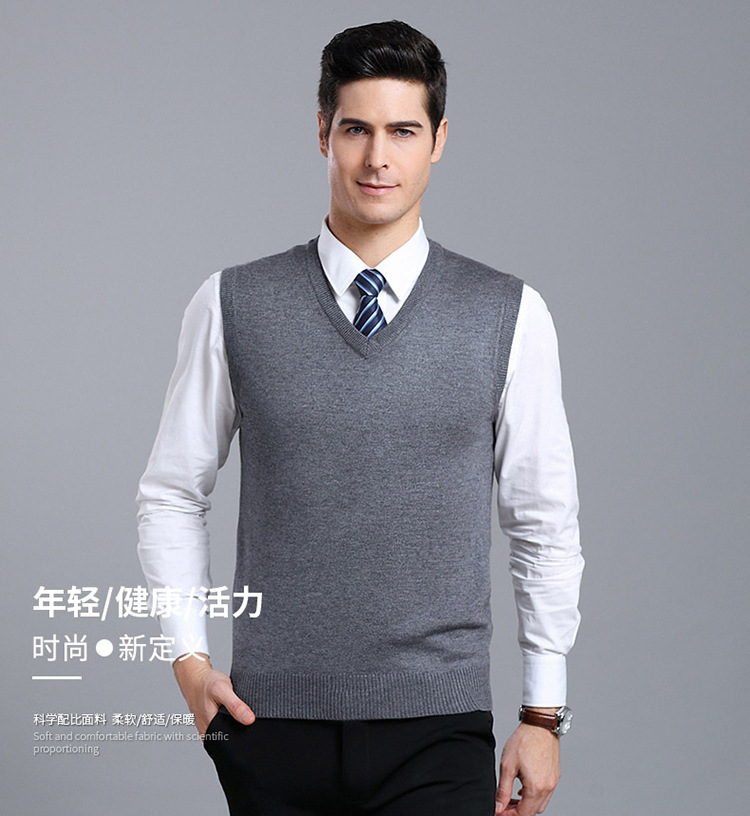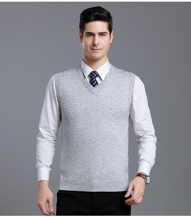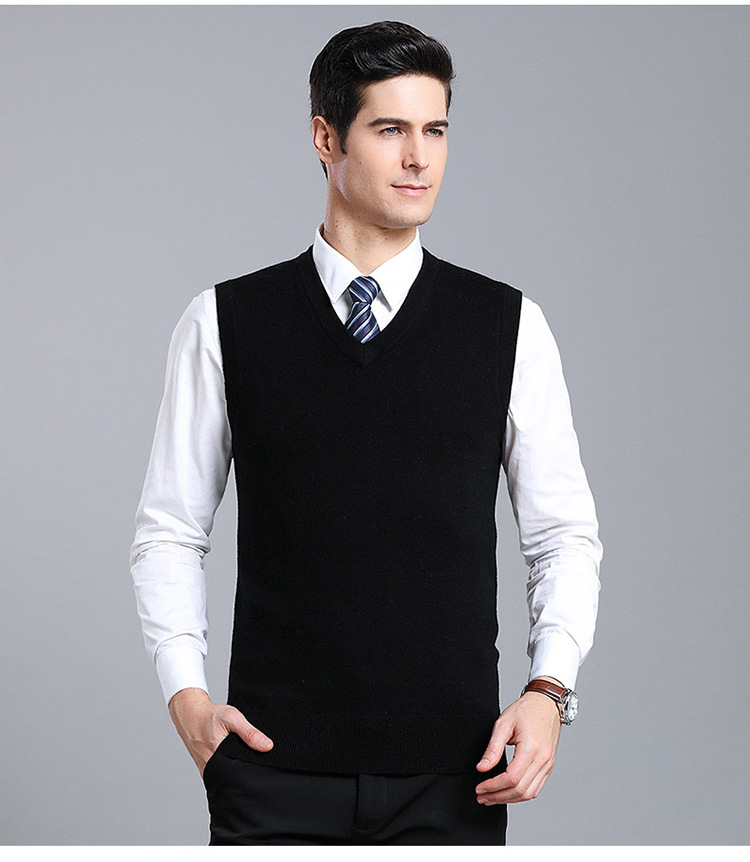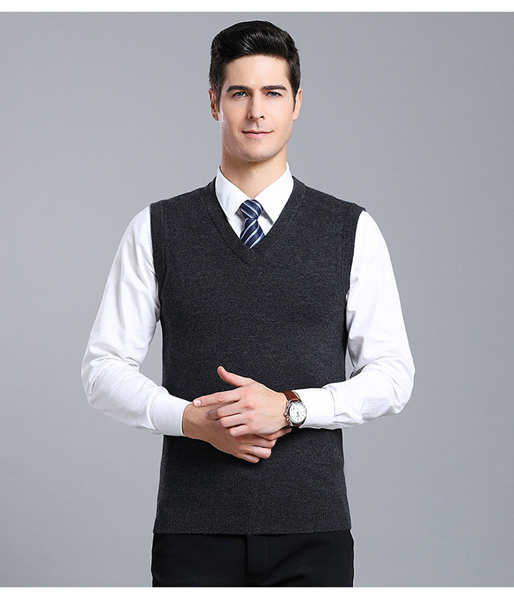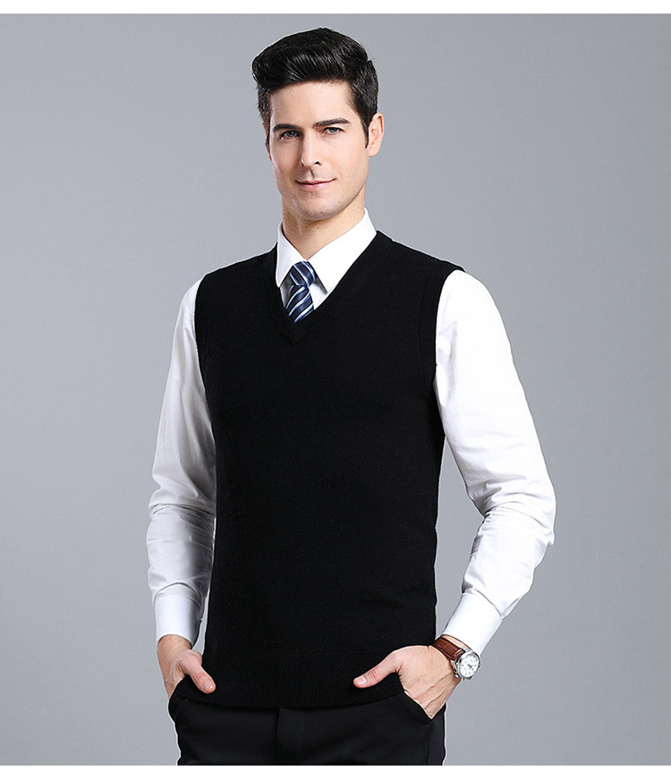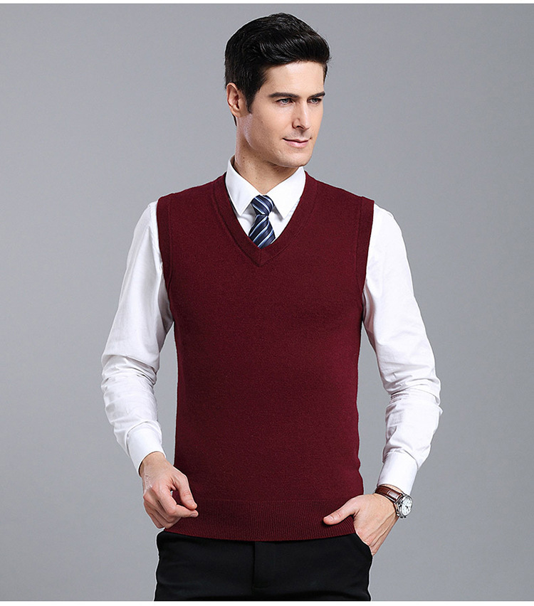 Оптовый Новый однотонный шерстяной жилет мужской V-образный вырез пожилой осенне-зимний шерстяной свитер нижний жилет мужской жилет