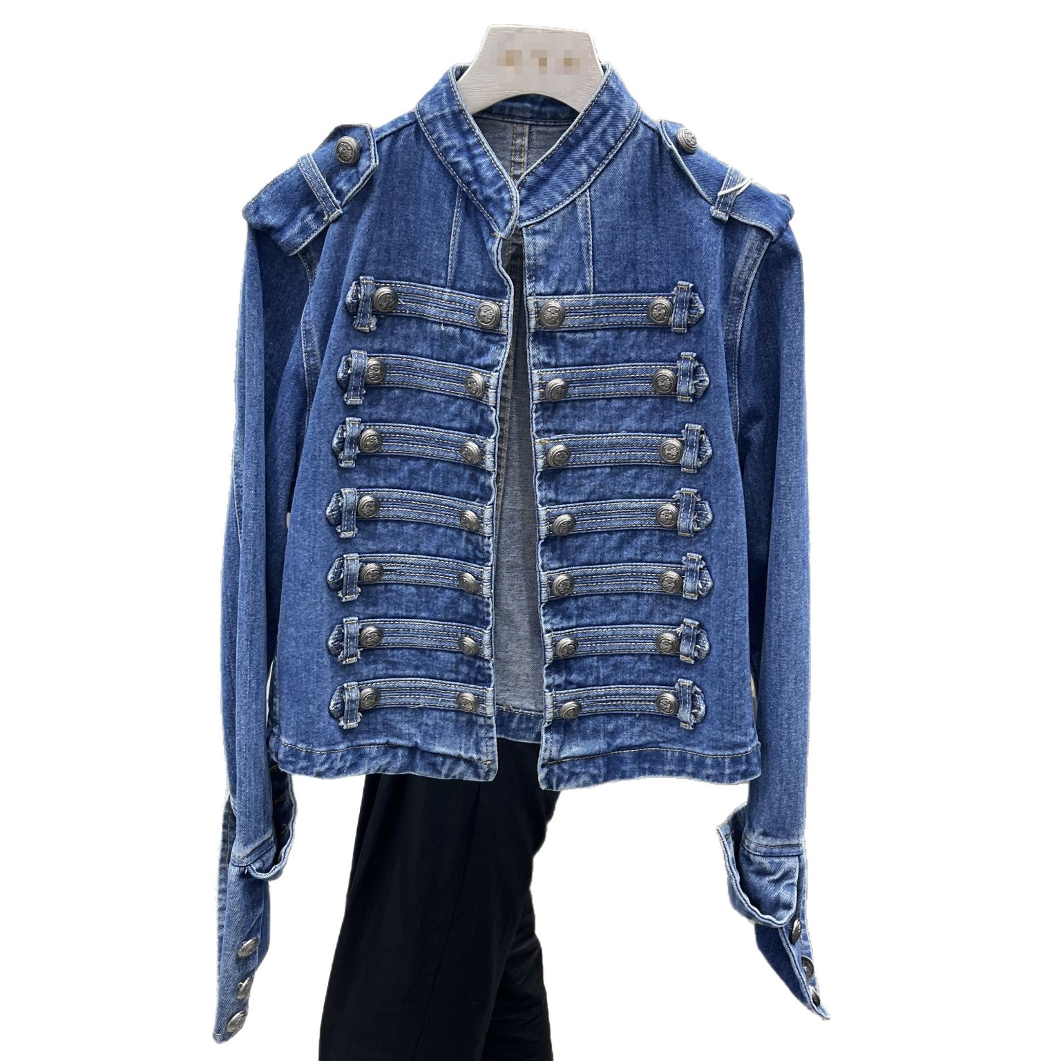 Европейские ретро-топы в стиле дворца с пуговицами и длинными рукавами, модные джинсовые короткие куртки с воротником-стойкой на весну и осень 2025 года.