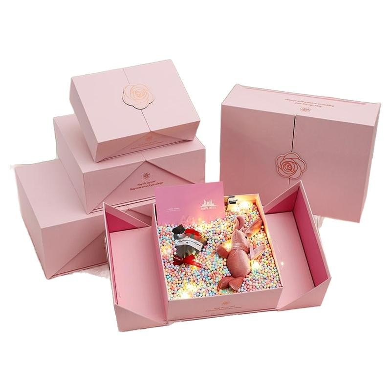 Подарочная коробка с откидной крышкой для девочек, розовая подарочная коробка, индивидуальная подарочная коробка для сувениров, индивидуальная упаковка для парфюмерии.