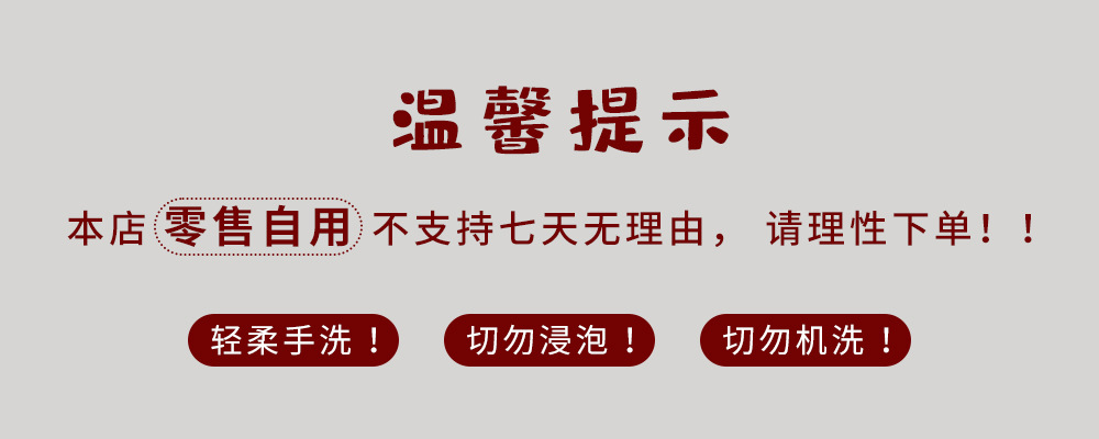 温水轻柔手洗 切勿浸泡!! 切勿机洗!!