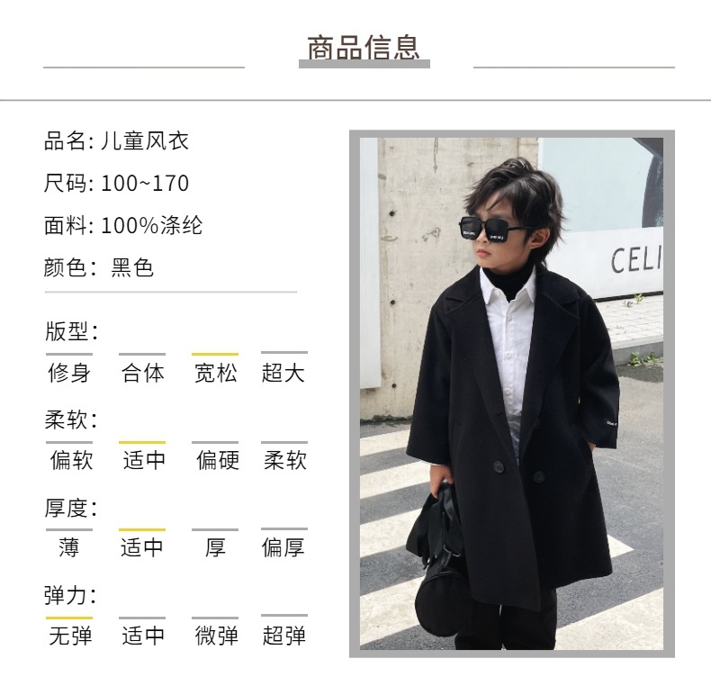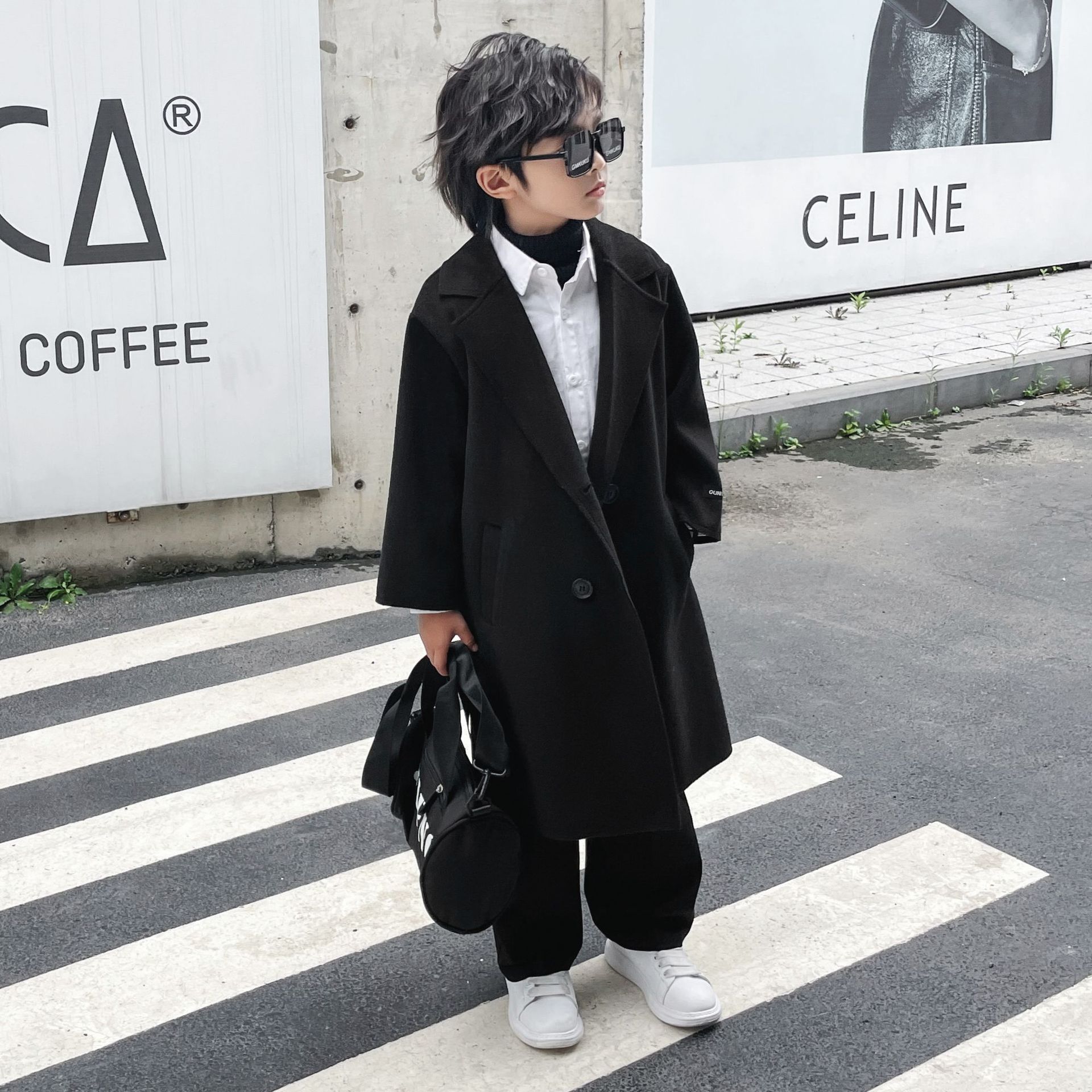 Детская одежда Плащ для мальчиков Детское длинное пальто 2023 Осенне-зимнее модное классное Детское пальто в британском стиле