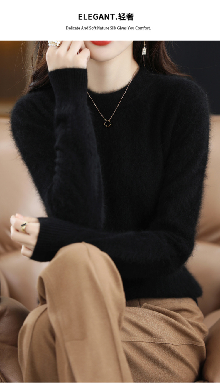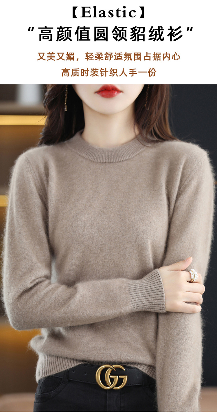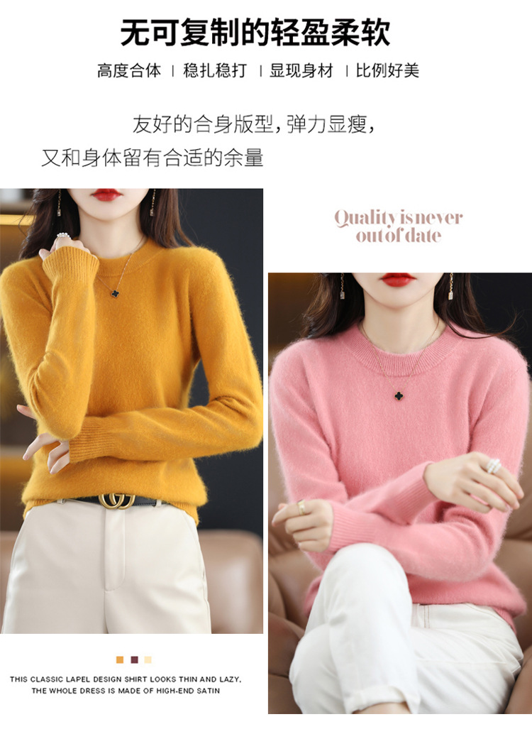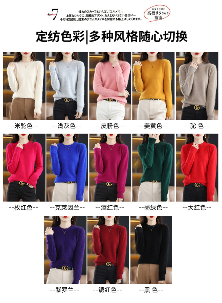 Новый женский свитер из норковой шерсти на осень и зиму, с круглым вырезом, разноцветный короткий шерстяной свитер, вязаный свитер, женская одежда для трансграничной торговли, кашемировый свитер-топ