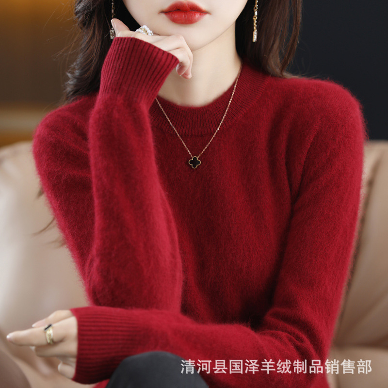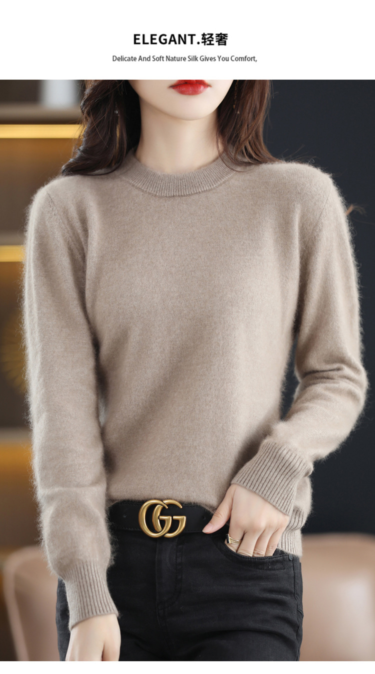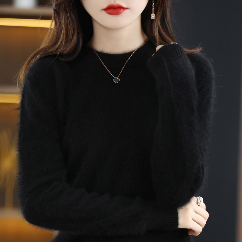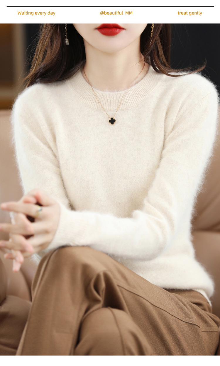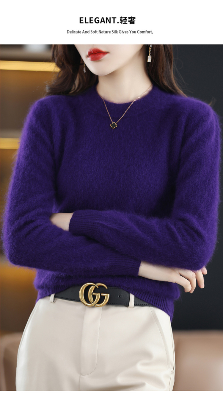 Новый женский свитер из норковой шерсти на осень и зиму, с круглым вырезом, разноцветный короткий шерстяной свитер, вязаный свитер, женская одежда для трансграничной торговли, кашемировый свитер-топ