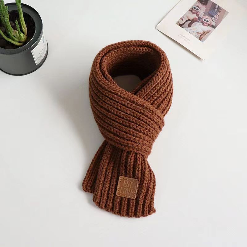 Детский кожаный шарф в корейском стиле, зимний теплый шерстяной детский шарф для мальчиков и девочек, универсальный детский шарф