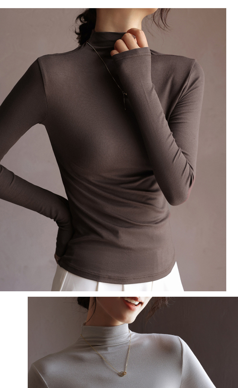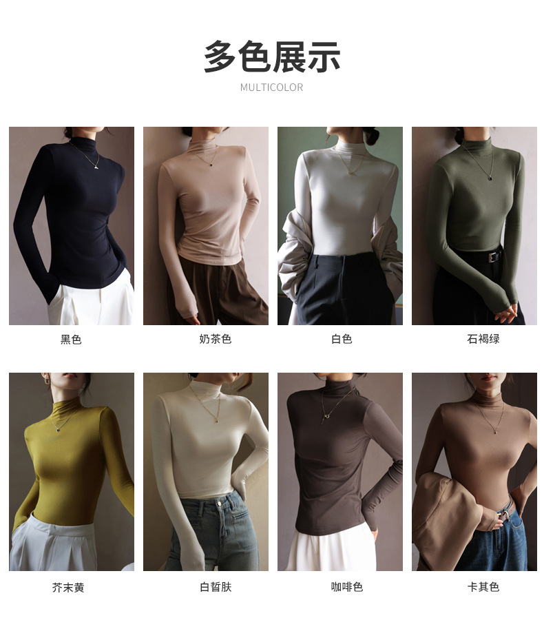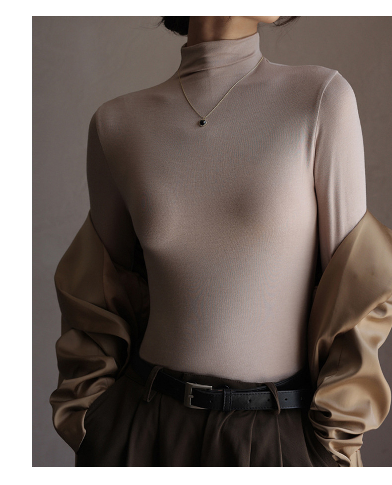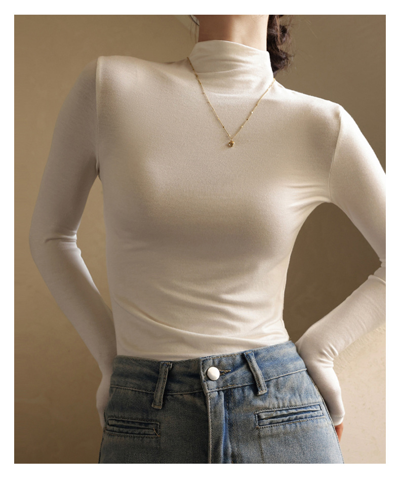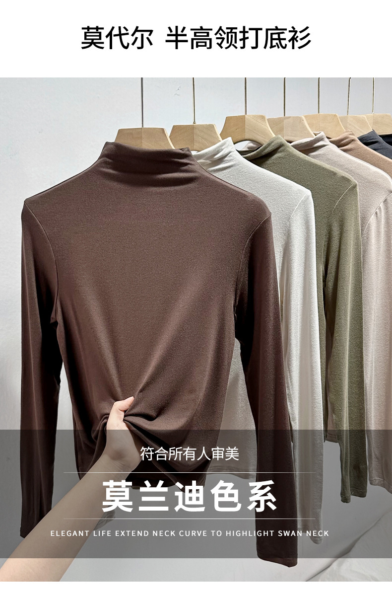 Базовая женская футболка из модала с полувысоким воротником, новая осенняя модель, стильный топ с длинным рукавом, облегающий и универсальный.