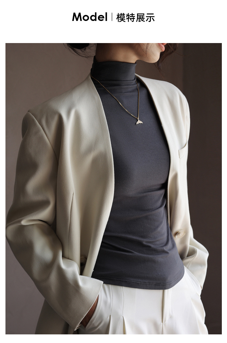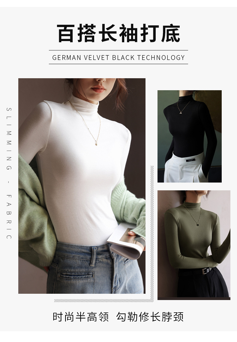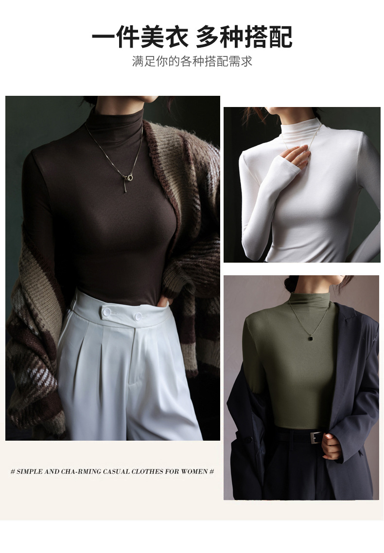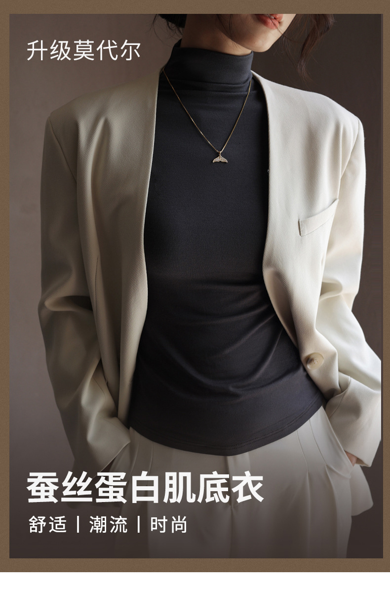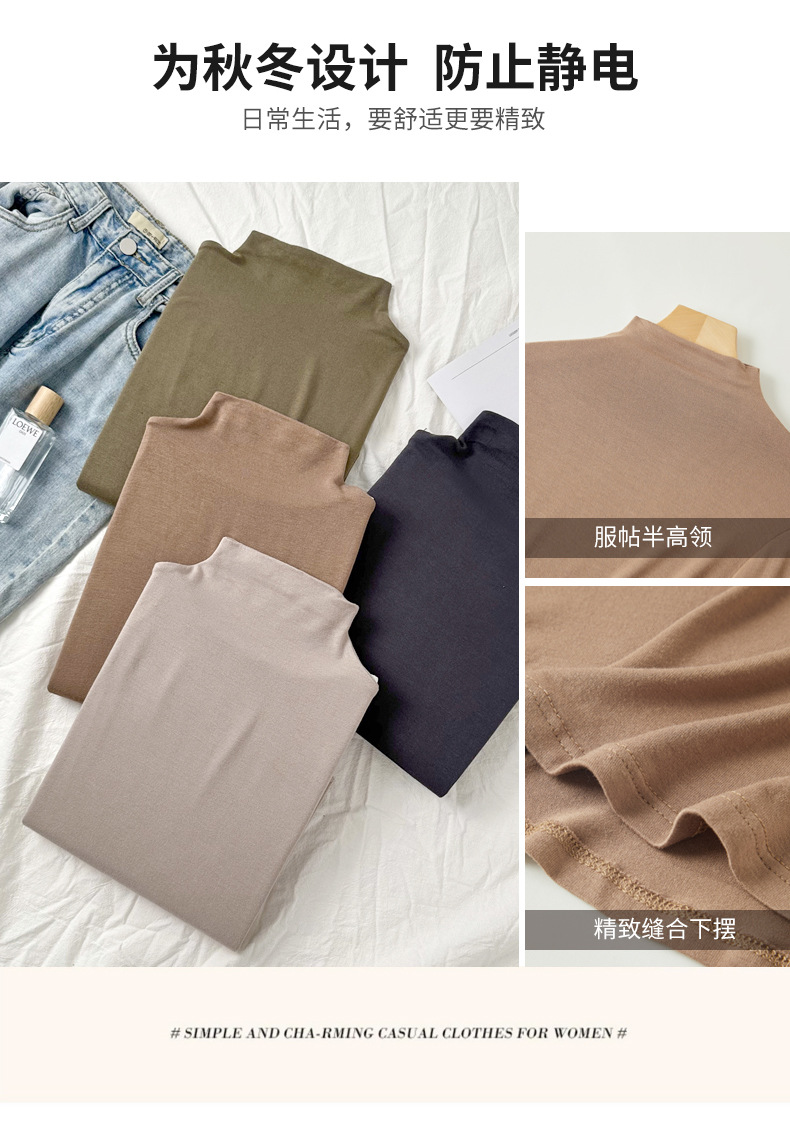 Базовая женская футболка из модала с полувысоким воротником, новая осенняя модель, стильный топ с длинным рукавом, облегающий и универсальный.