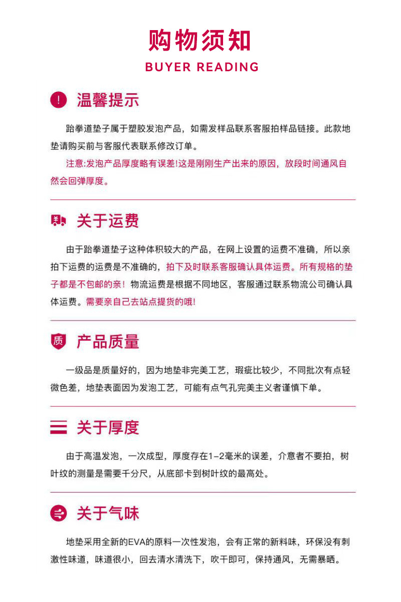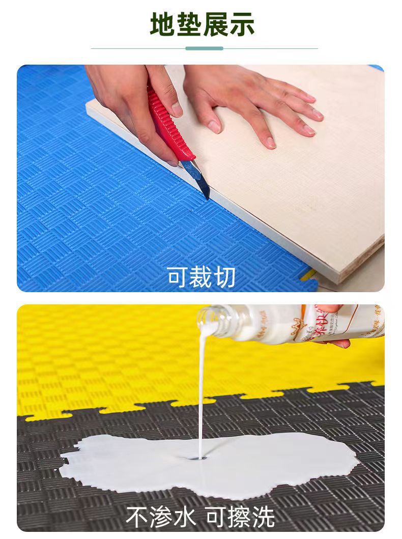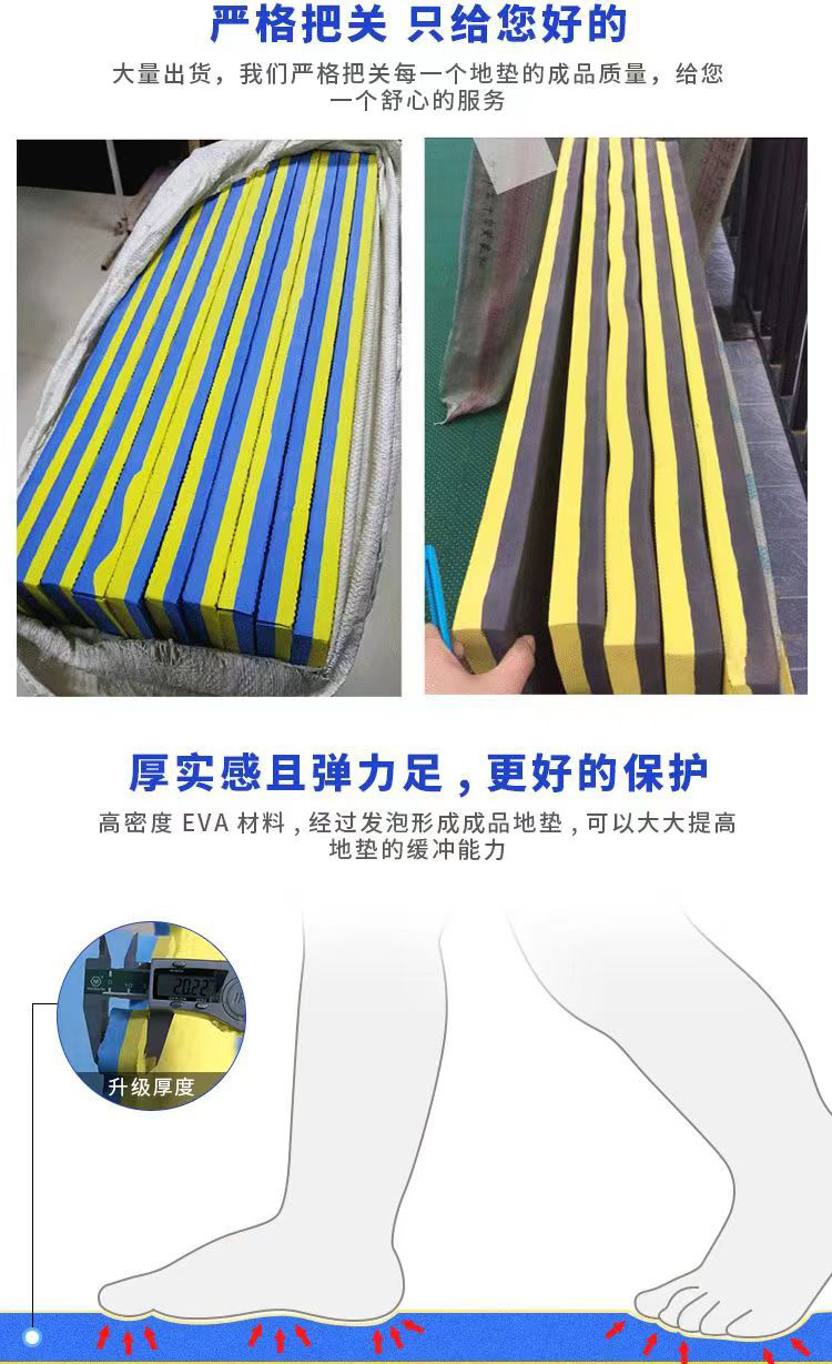垫子是塑料颗粒经高温发泡而成,是有轻微味道的,铺上后通风几天基本就闻不到了,可放心使用。