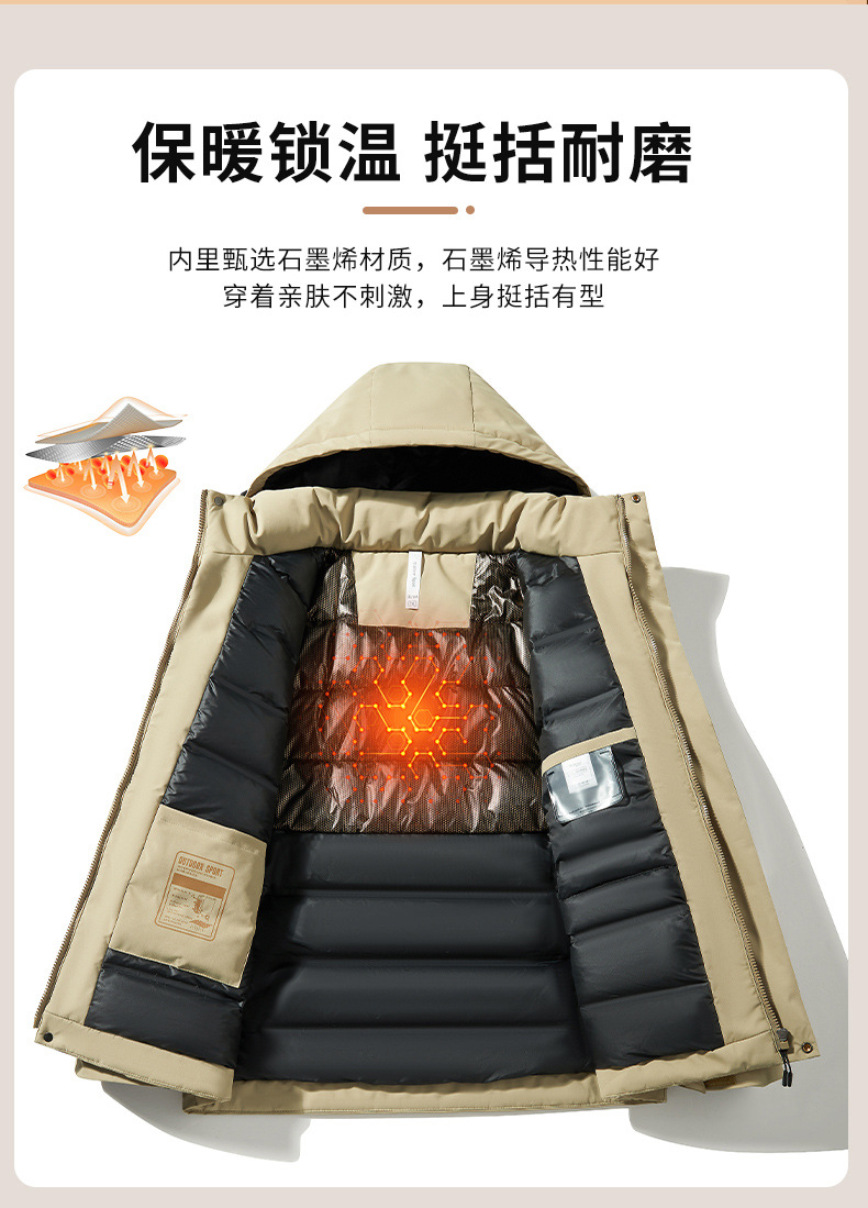 Зимняя утепленная теплая куртка Graphene Sports Leisure Пальто с капюшоном на хлопковой подкладке Утолщенная ветрозащитная куртка Куртка с хлопковой подкладкой Групповая покупка