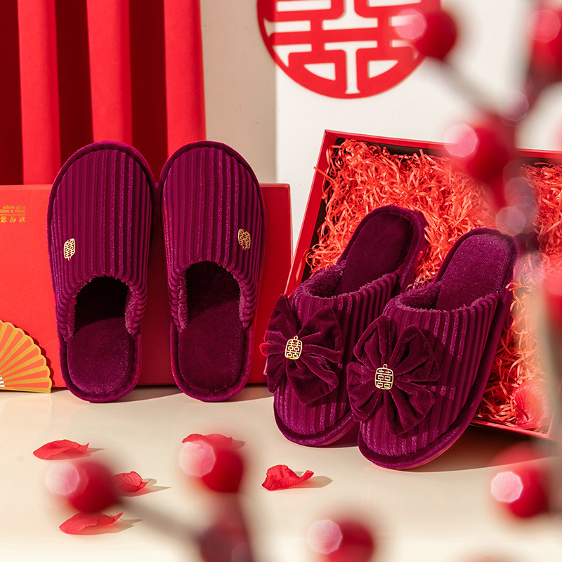 Свадебные Тапочки для пар, праздничная красная пара, теплая осенне-зимняя Домашняя одежда, противоскользящее ощущение говна, свадебное сопровождение