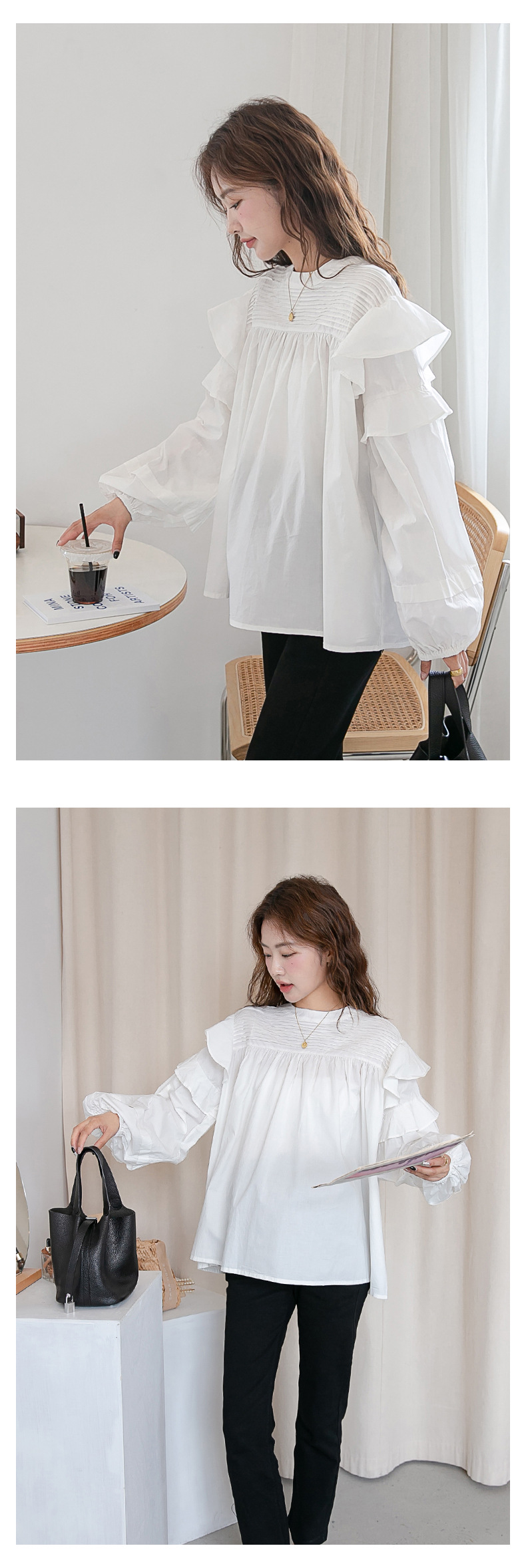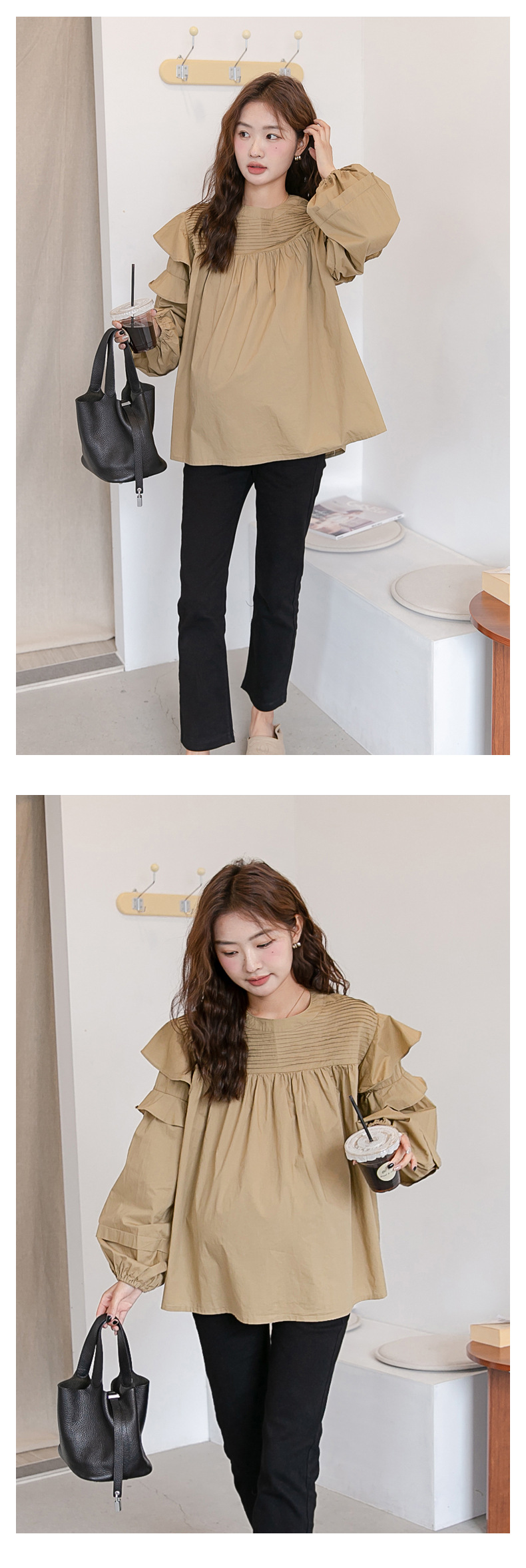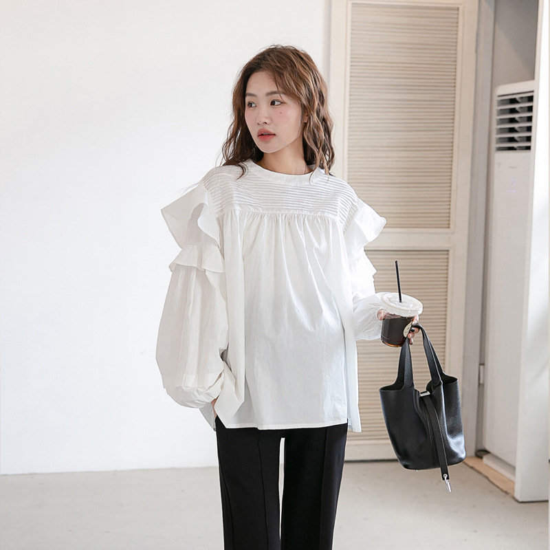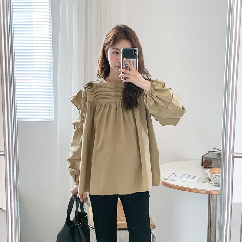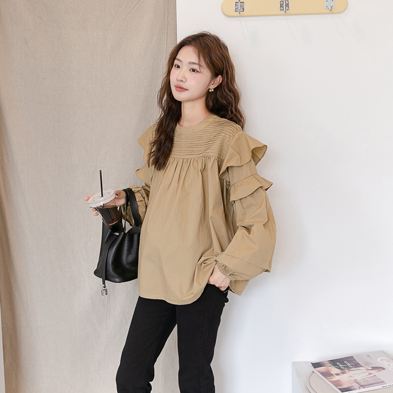Платье для беременных весна и осень одежда костюм 2023 Новая мода кукольная рубашка с длинными рукавами Блузка Ранняя осень