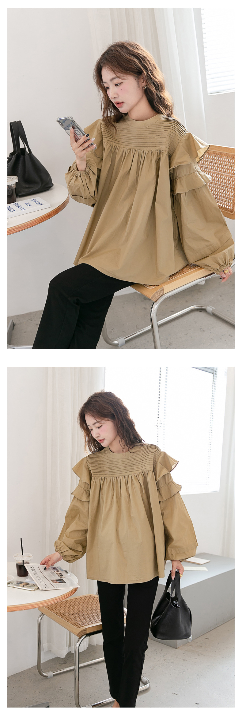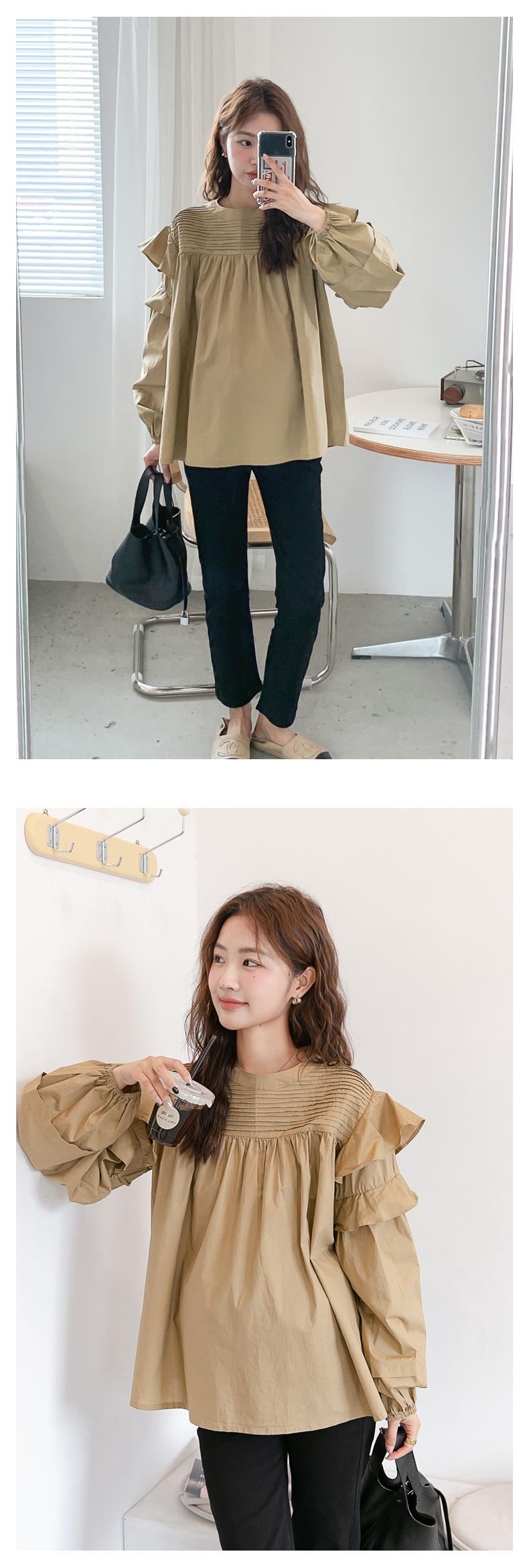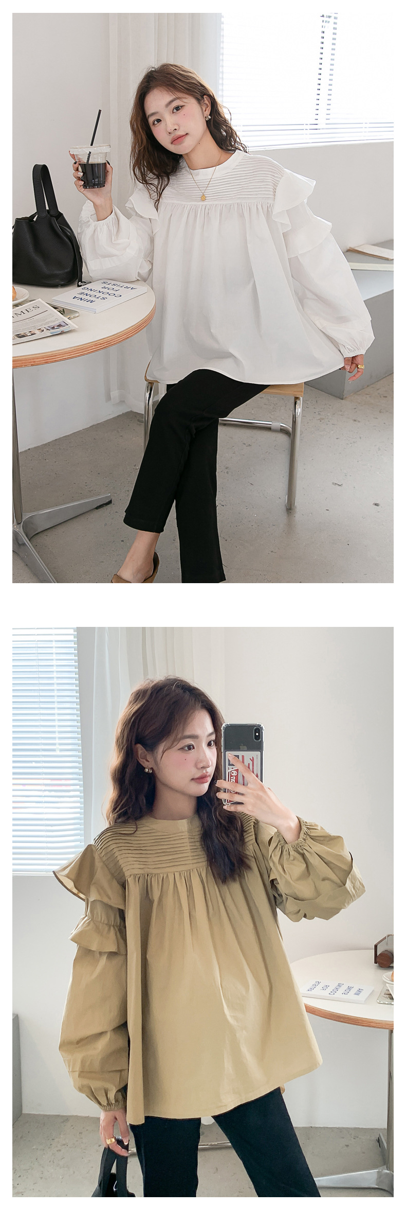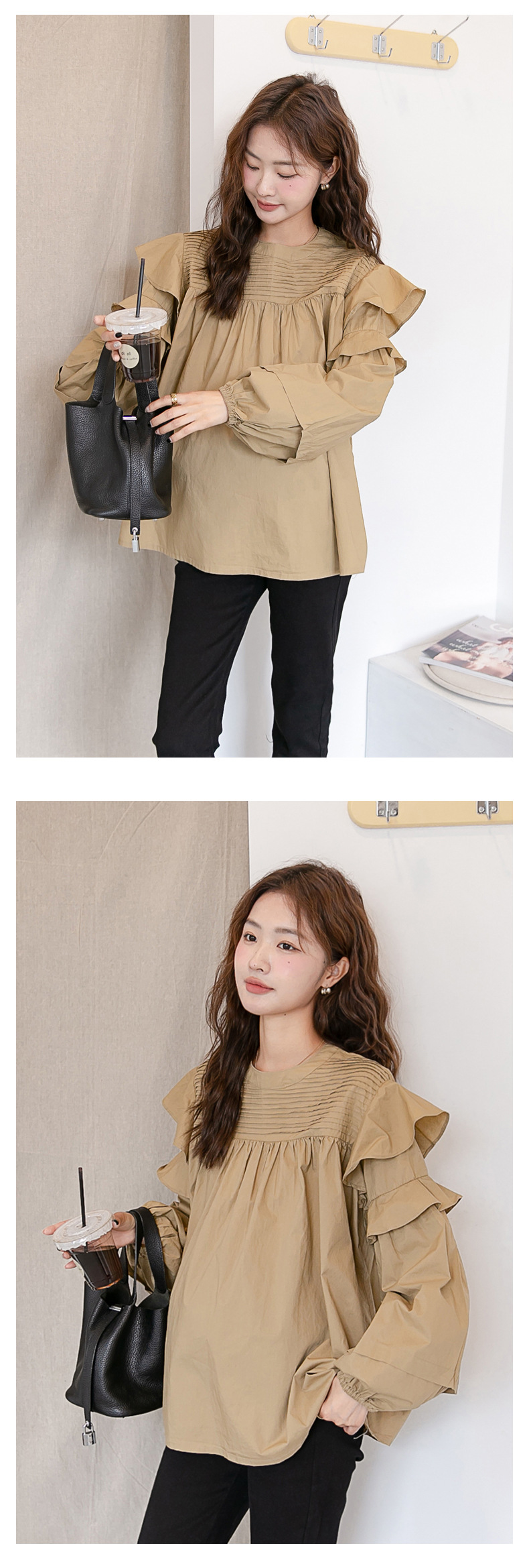 Платье для беременных весна и осень одежда костюм 2023 Новая мода кукольная рубашка с длинными рукавами Блузка Ранняя осень