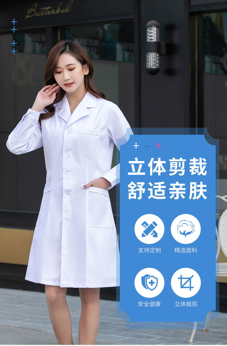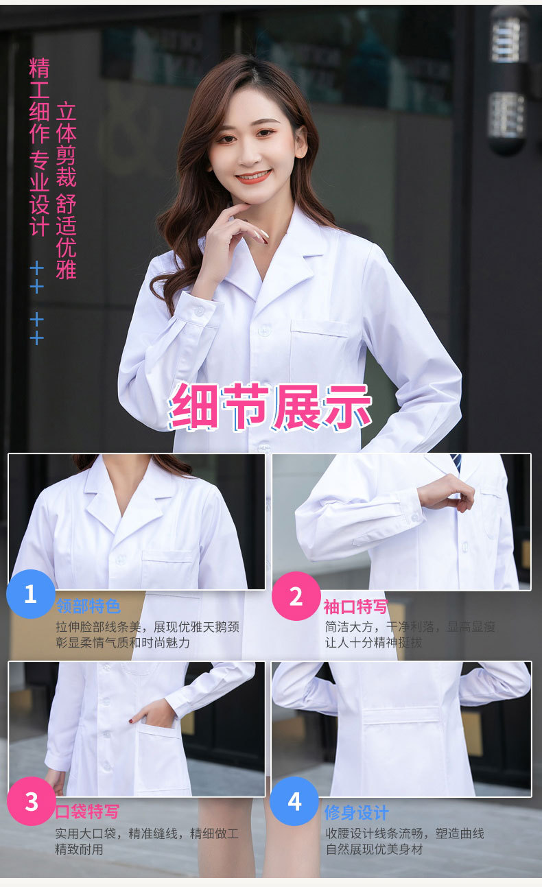 Белое пальто Женская одежда для врача с длинными рукавами Одежда для медсестер Одежда для химических лабораторий Рабочая одежда для больниц и аптек