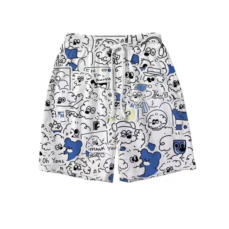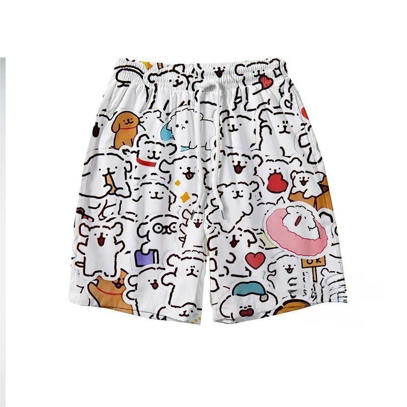 Летние шорты, свободные домашние пятиконечные штаны для сна с мультяшным принтом, пижамные штаны, повседневные брюки, Пляжные штаны для пар для отпуска на море