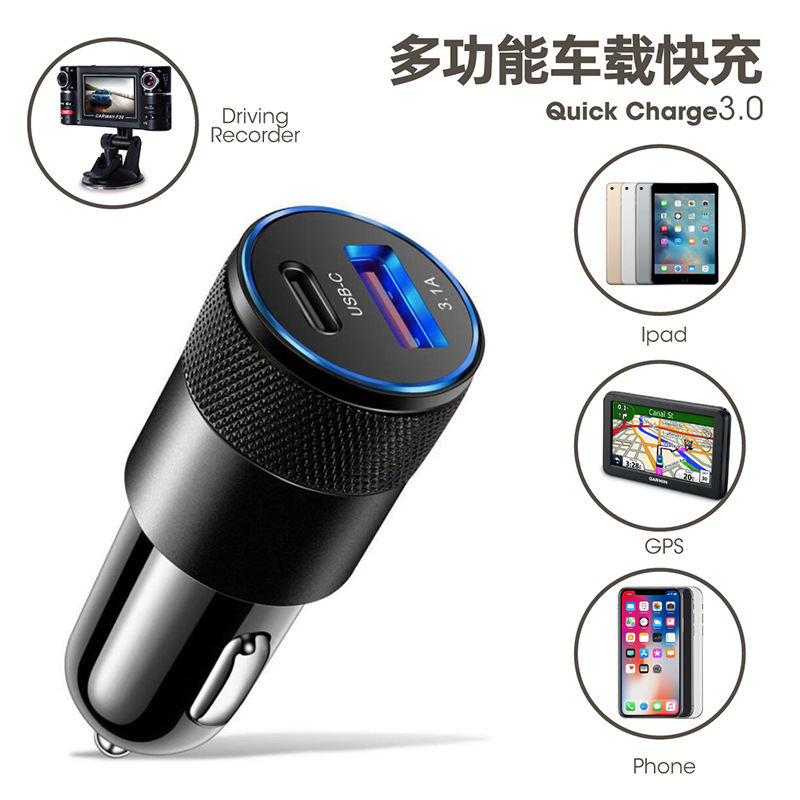 Маленькое стальное автомобильное зарядное устройство для пистолета 3.1A USB + PD металлическое автомобильное зарядное устройство из алюминиевого сплава автомобильное зарядное устройство для мобильного телефона трансграничная оптовая продажа