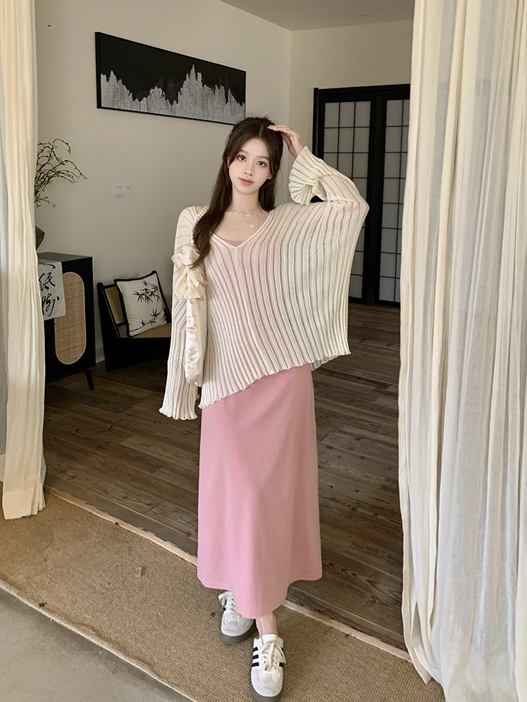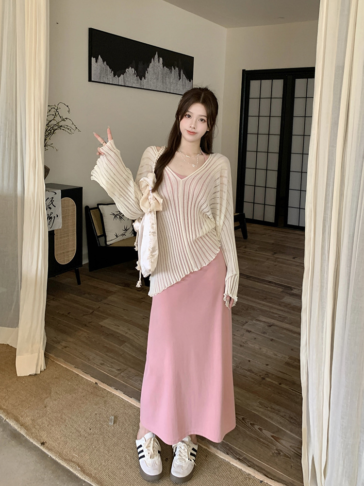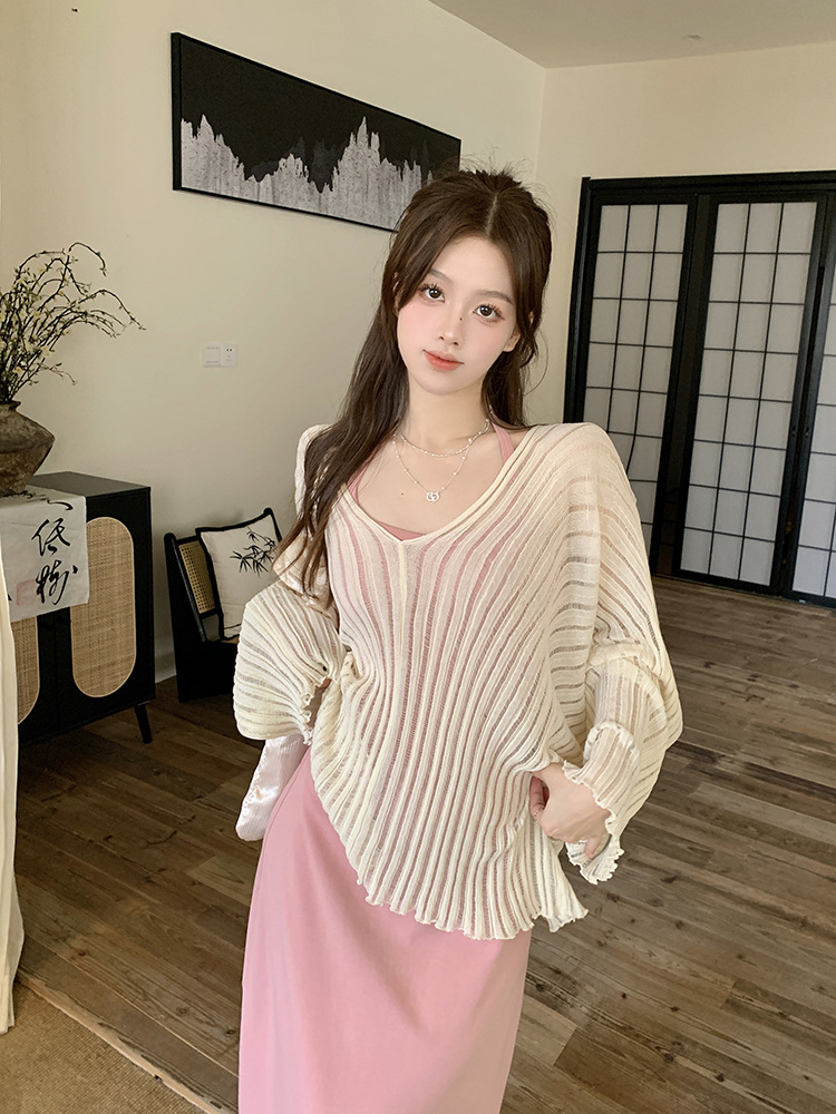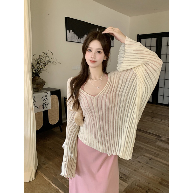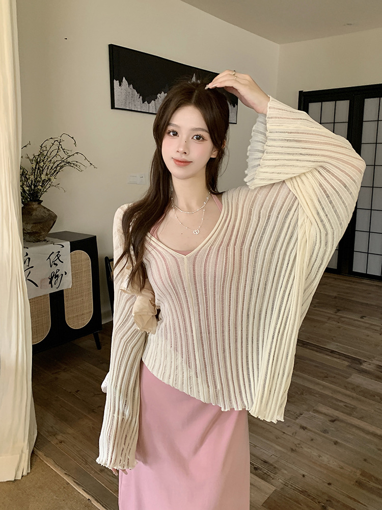 Женская трикотажная блузка с V-образным вырезом, свободная блузка в ленивом стиле, релаксационный дизайн на осень