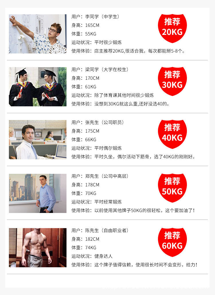 10KG; 20KG; 30KG; 40KG; 50KG; 60KG