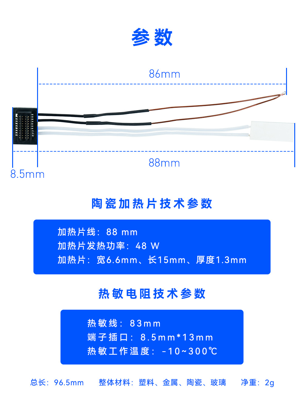 包装包含:陶瓷加热片+热敏测温线*1 PCS