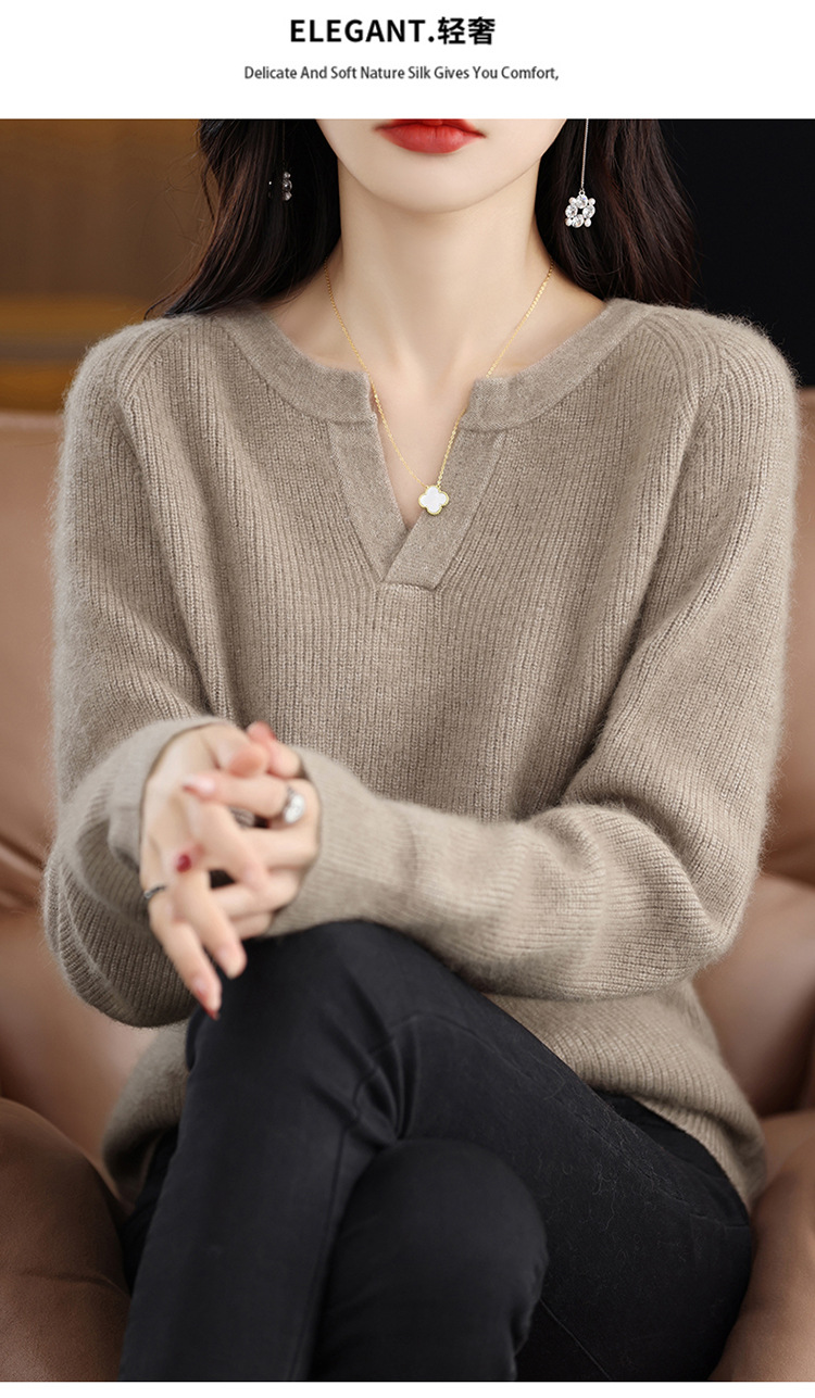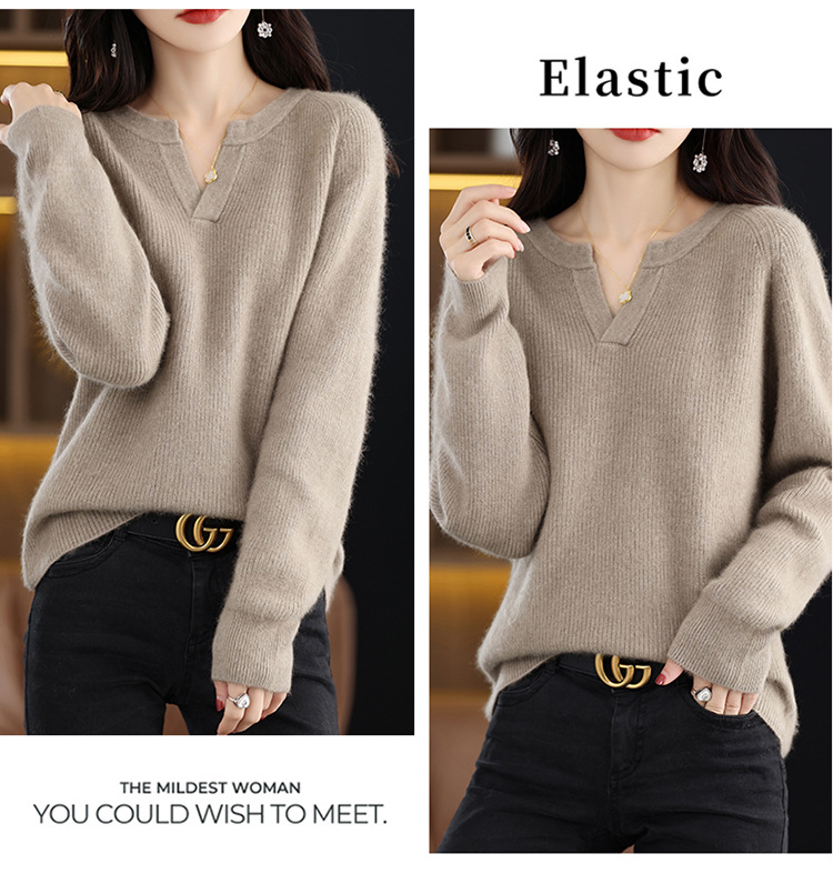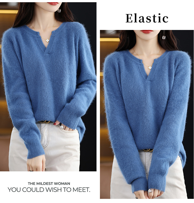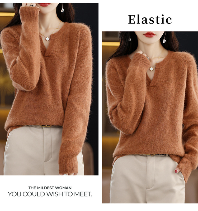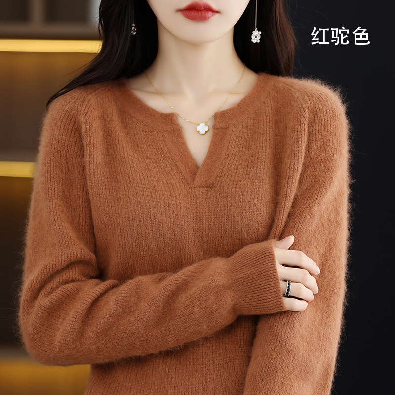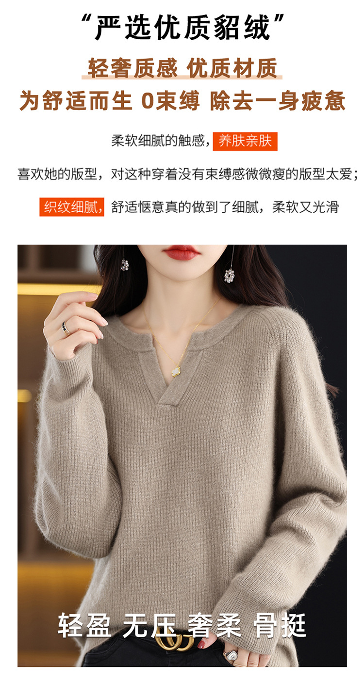 Осенне-зимний свитер из норкового флиса, Женский утолщенный Свободный пуловер с V-образным вырезом, свитер, свободный трансграничный женский базовый флисовый свитер больших размеров