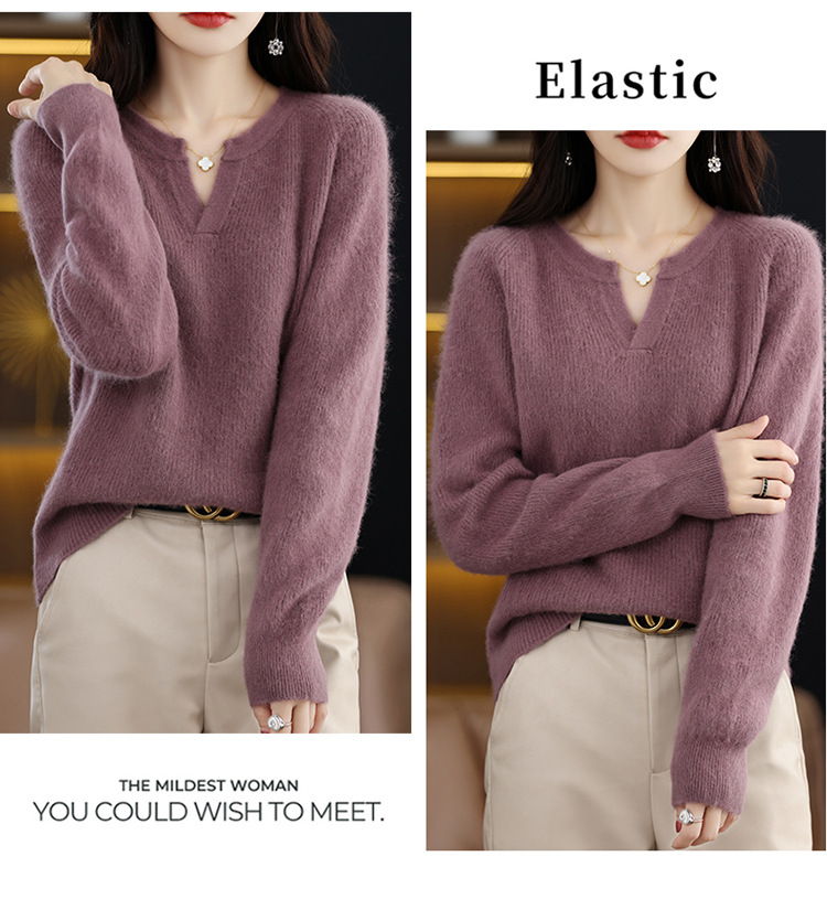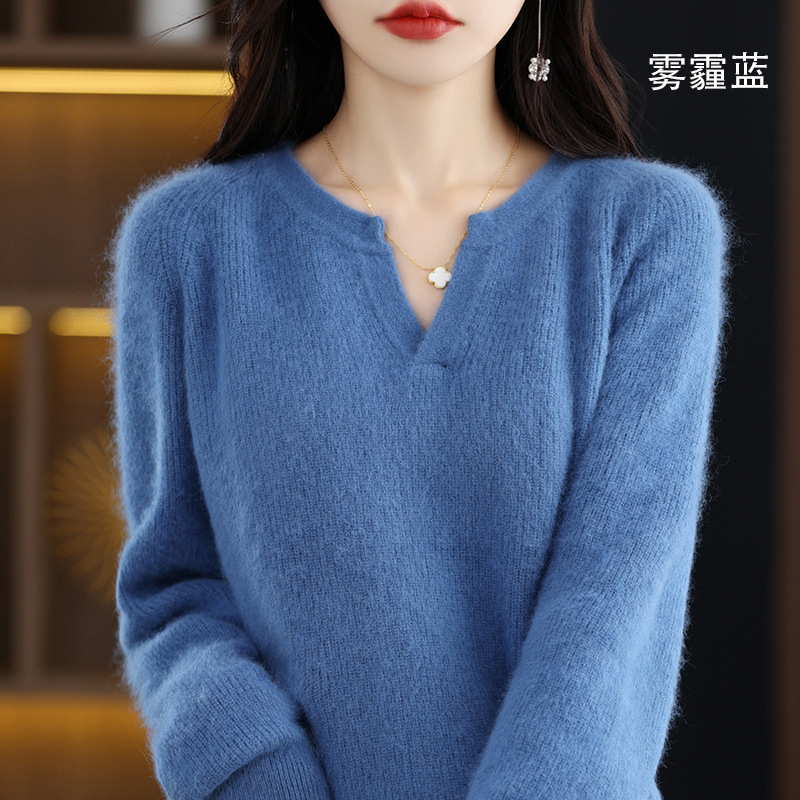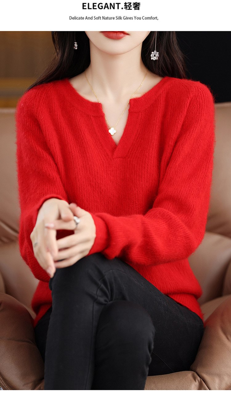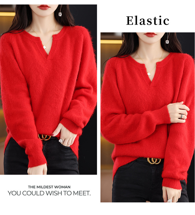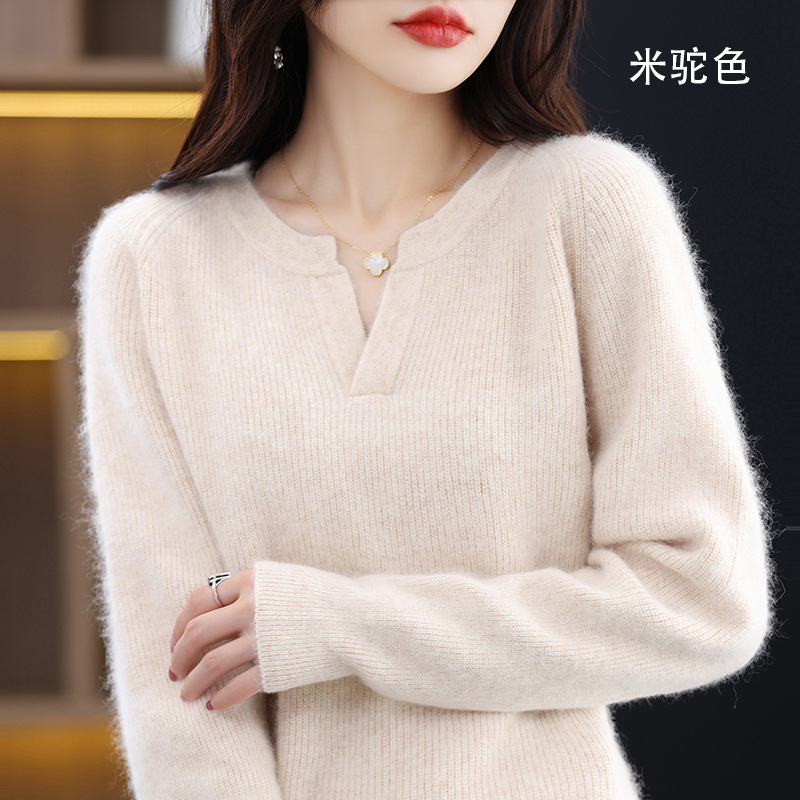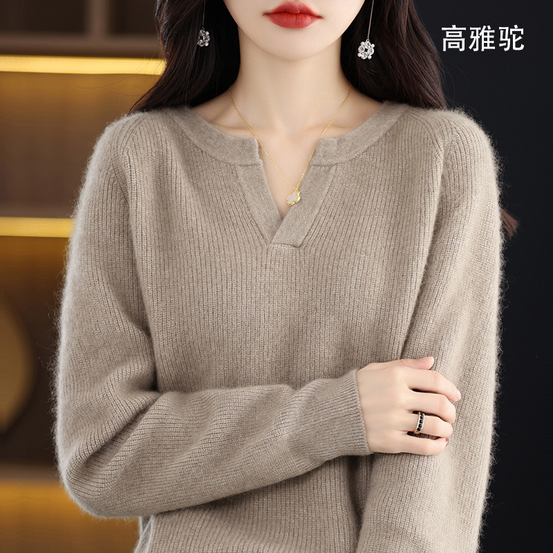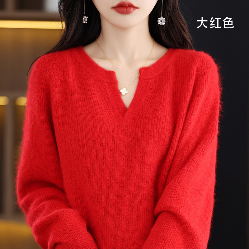 Осенне-зимний свитер из норкового флиса, Женский утолщенный Свободный пуловер с V-образным вырезом, свитер, свободный трансграничный женский базовый флисовый свитер больших размеров
