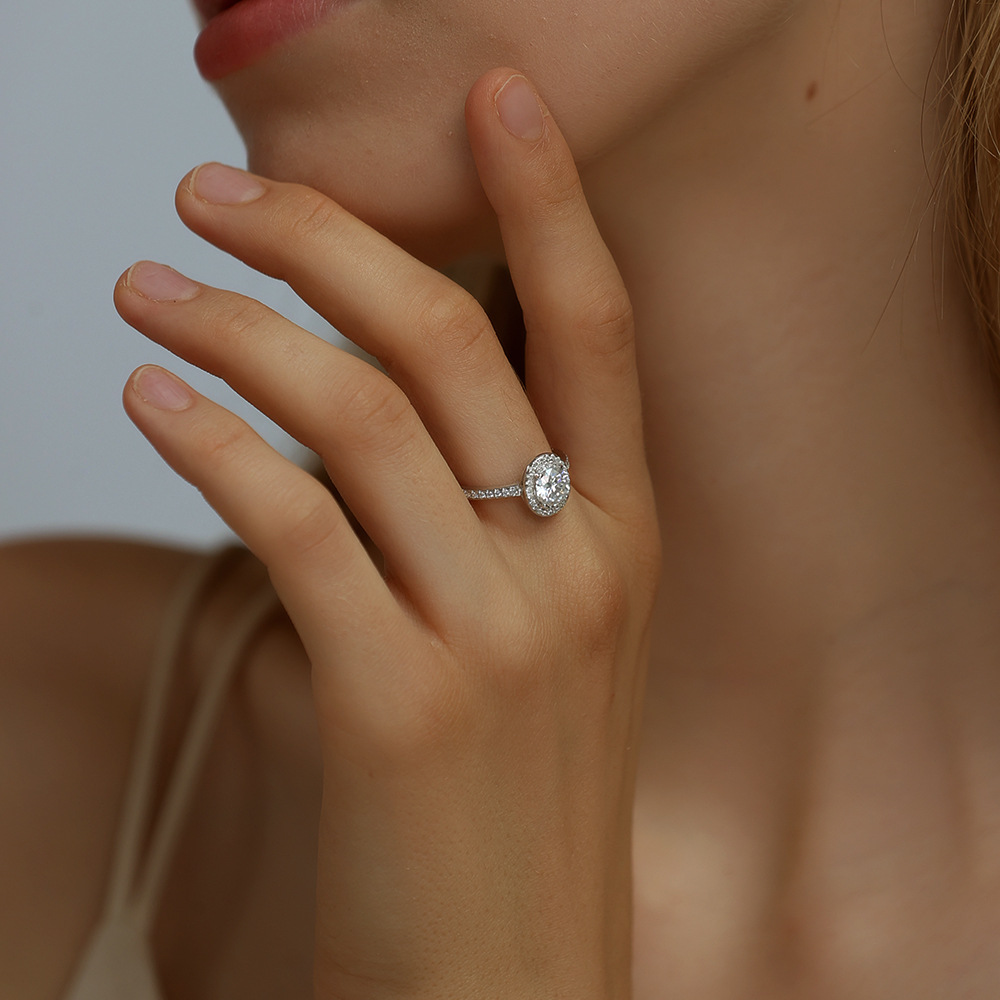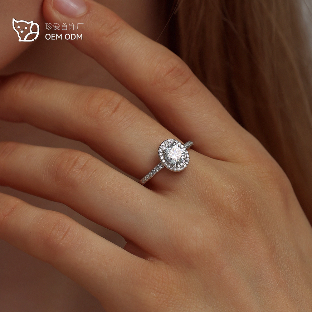 Кольцо из серебра 925 пробы с покрытием из платины 950 пробы, овальный муассанит огранки «голубиное яйцо», женские украшения, прямые поставки с завода, трансграничная прямая трансляция, легкая роскошь.