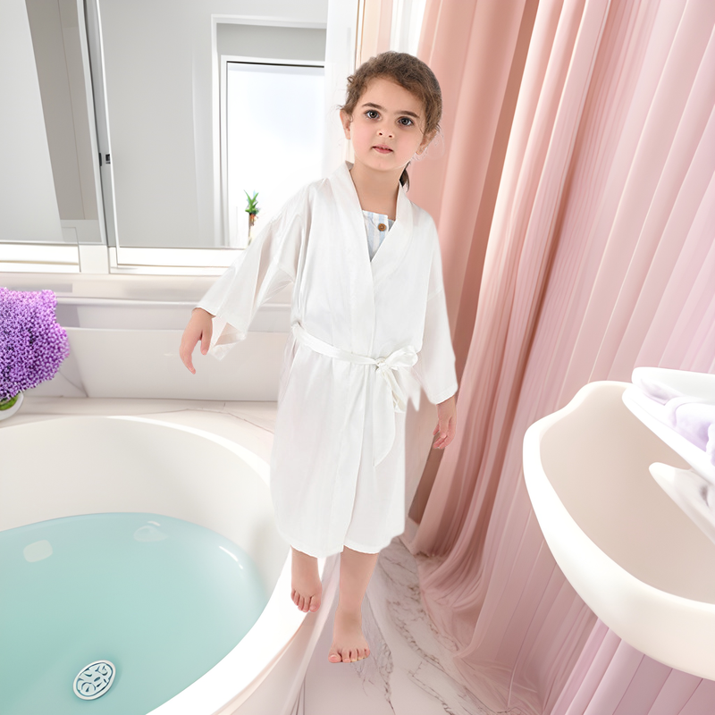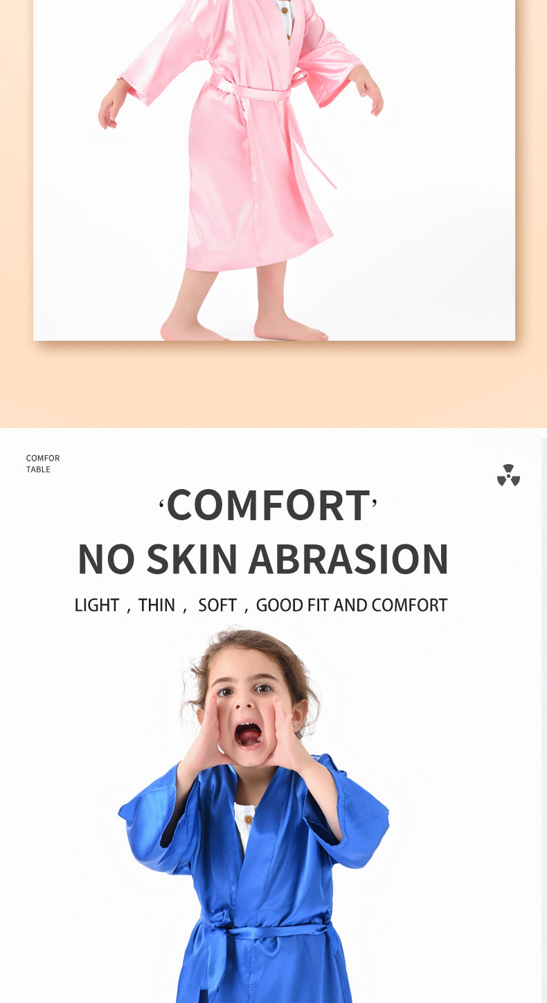 Трансграничный однотонный детский халат из искусственного шелка, экспортная большая детская атласная ночная рубашка, детский подиумный кардиган, халат для мальчиков и девочек