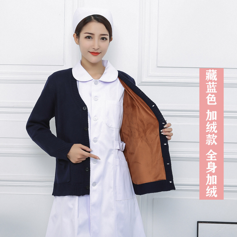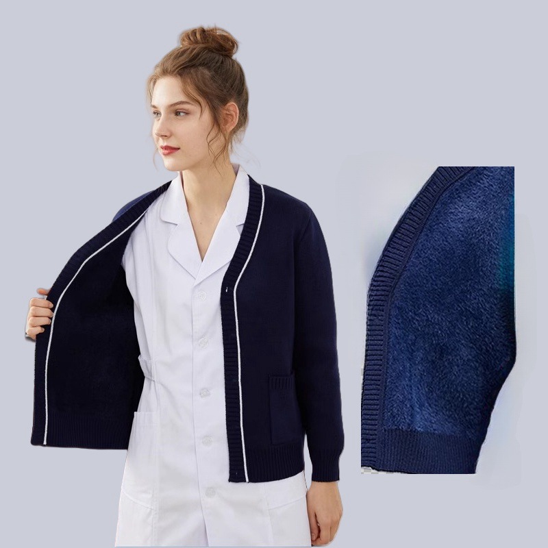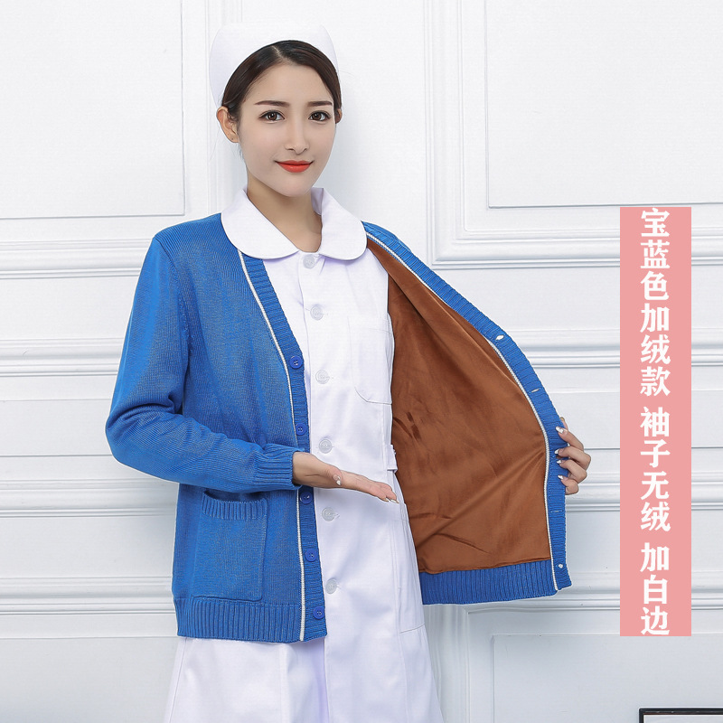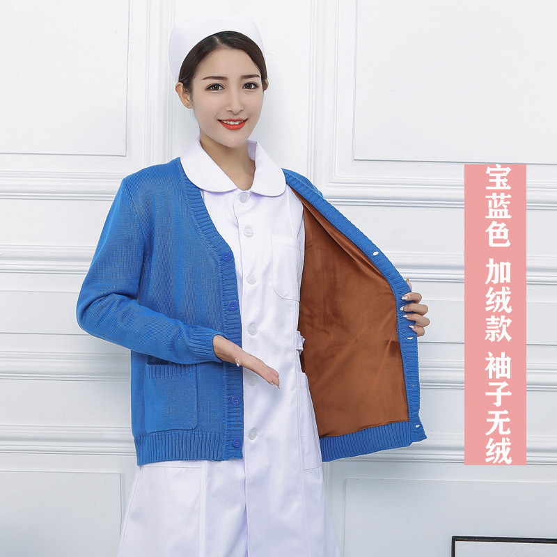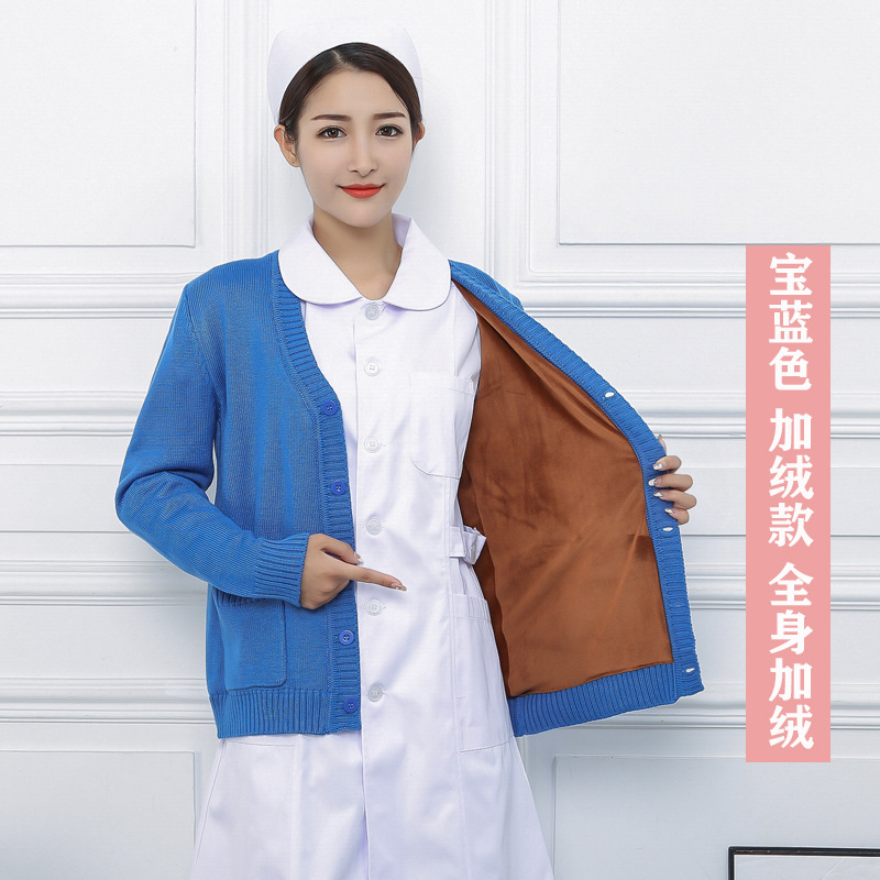 Медсестра свитер кардиган женский Тибетский синий трикотаж доктор медсестра одежда утепленное пальто на флисовой подкладке верхняя одежда медицинские производители