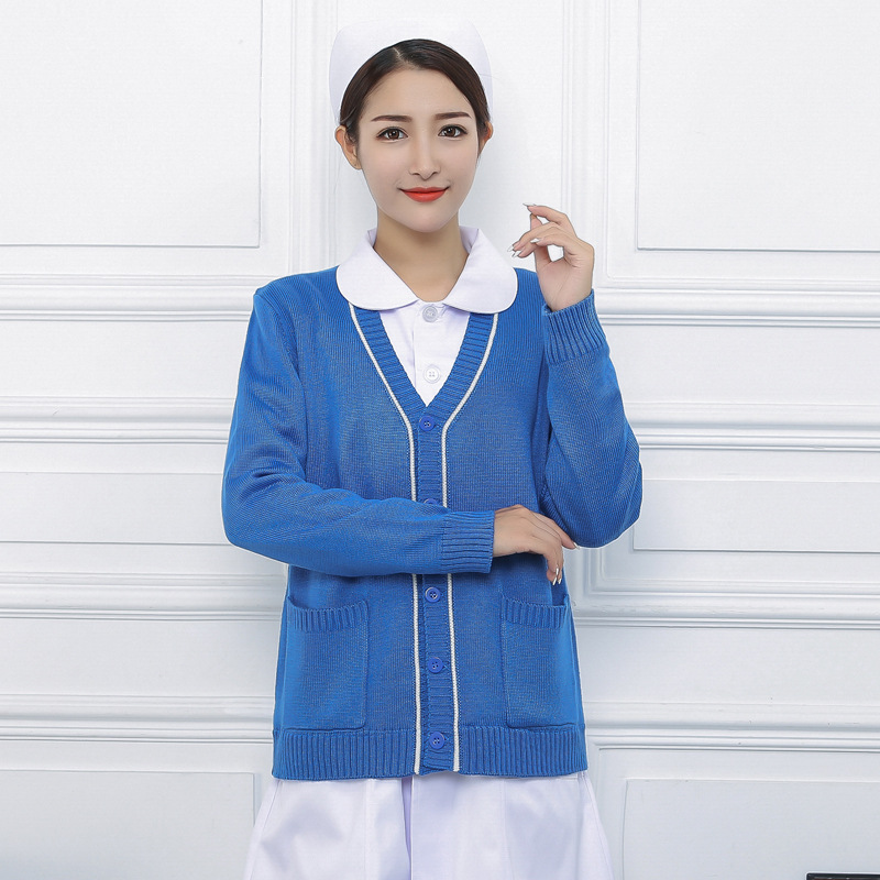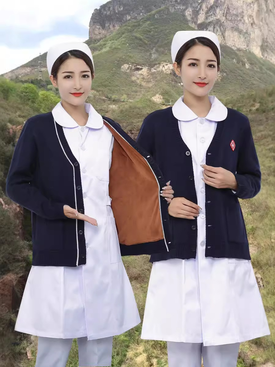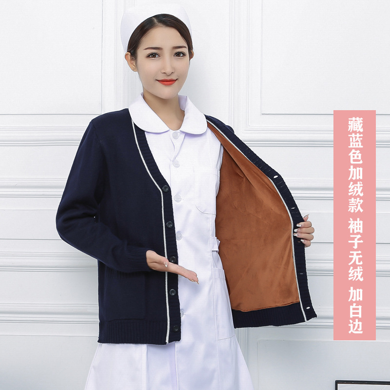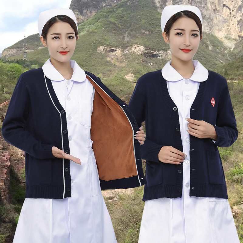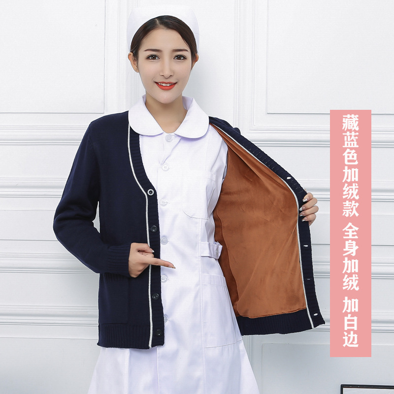 Медсестра свитер кардиган женский Тибетский синий трикотаж доктор медсестра одежда утепленное пальто на флисовой подкладке верхняя одежда медицинские производители
