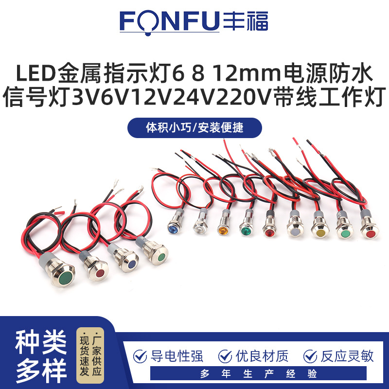 Светодиодный металлический индикатор питания 6 8 12 мм водонепроницаемый сигнальный свет 3V6V12V24V220V с проводной рабочей лампой