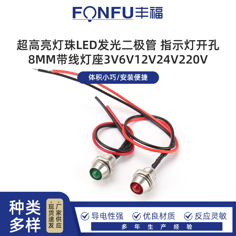 Супер яркие бусины лампы Светодиодный светоизлучающий диодный индикатор Отверстие 8 мм с проводным держателем лампы 3V6V12V24V220V