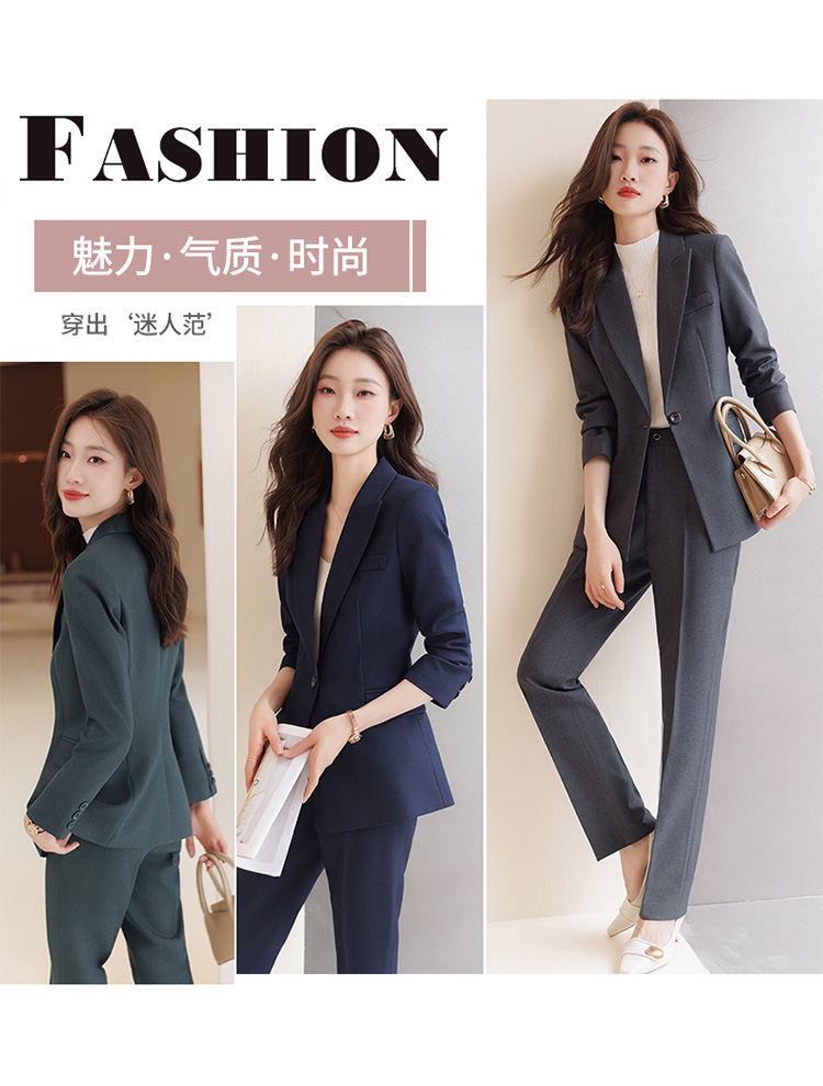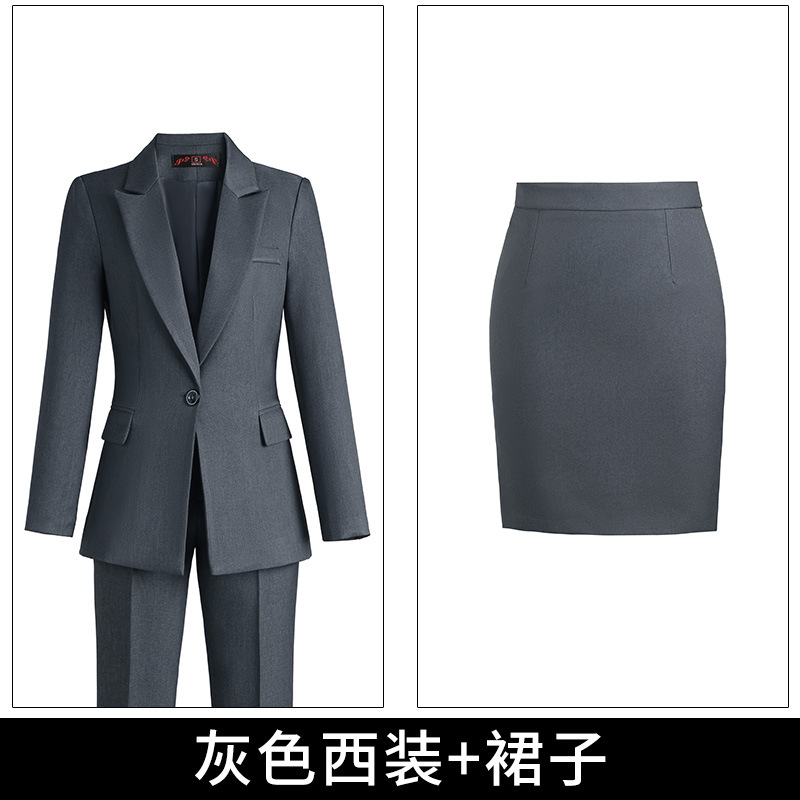 Серый пиджак + брюки; Черная куртка + брюки; Темно-синяя куртка + брюки; Сине-серый жакет + брюки; Серая цельная куртка; Черная одинарная куртка; Темно-синяя одинарная куртка; Сине-серая цельная куртка; Серые цельные брюки; Черные цельные брюки; Темно-синие цельные брюки; Синие и серые цельные брюки; Серый жакет + юбка; Черная куртка + юбка; Темно-синяя куртка + юбка; Серо-синяя куртка + юбка