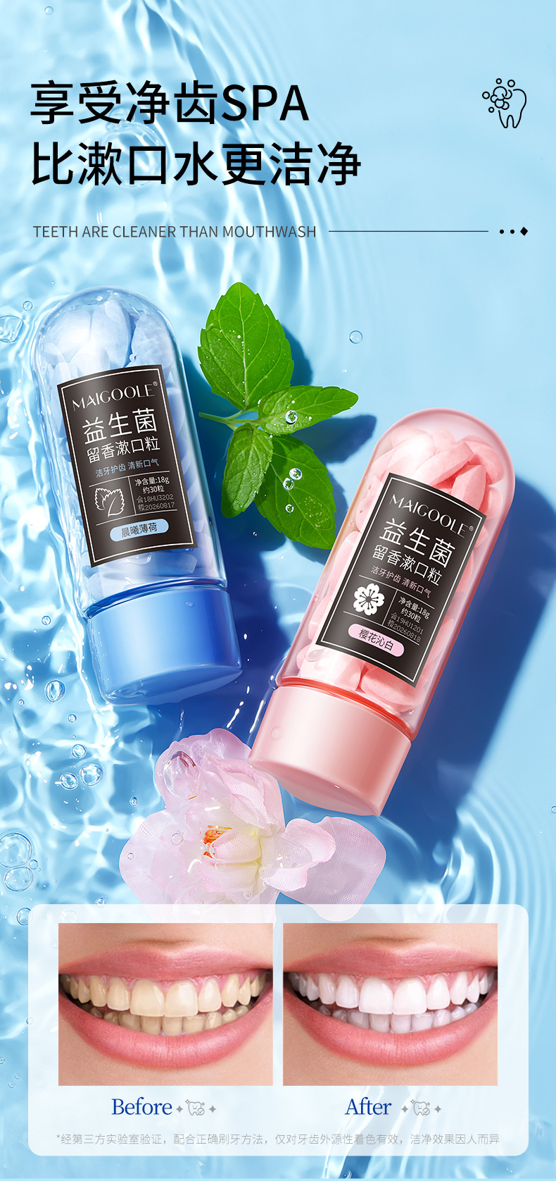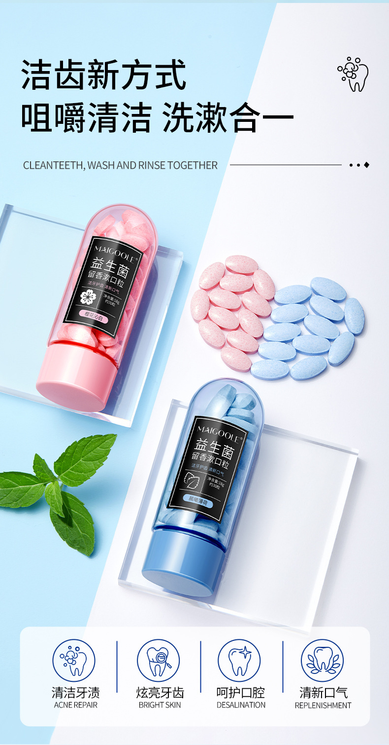 Meidalin Пробиотики Ароматизатор Гранулы полоскания Свежее дыхание Портативный полоскание Жевательные пробиотики Твердая зубная паста оптом