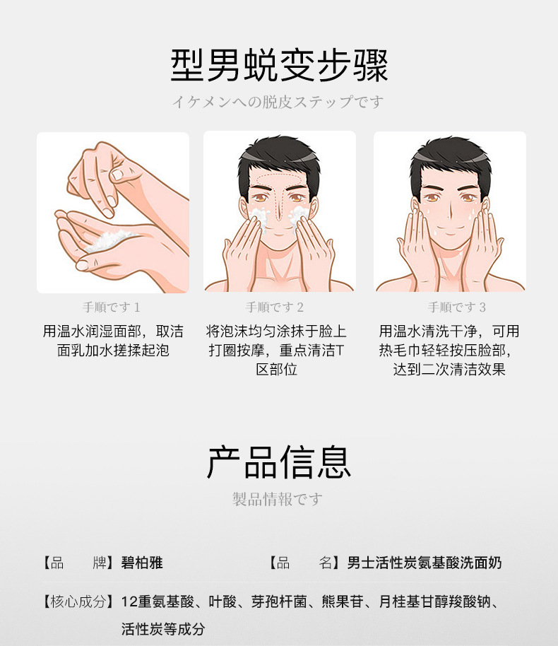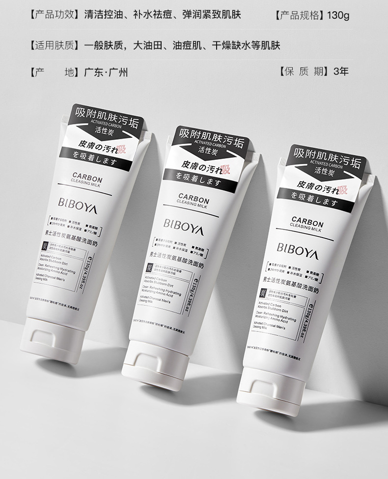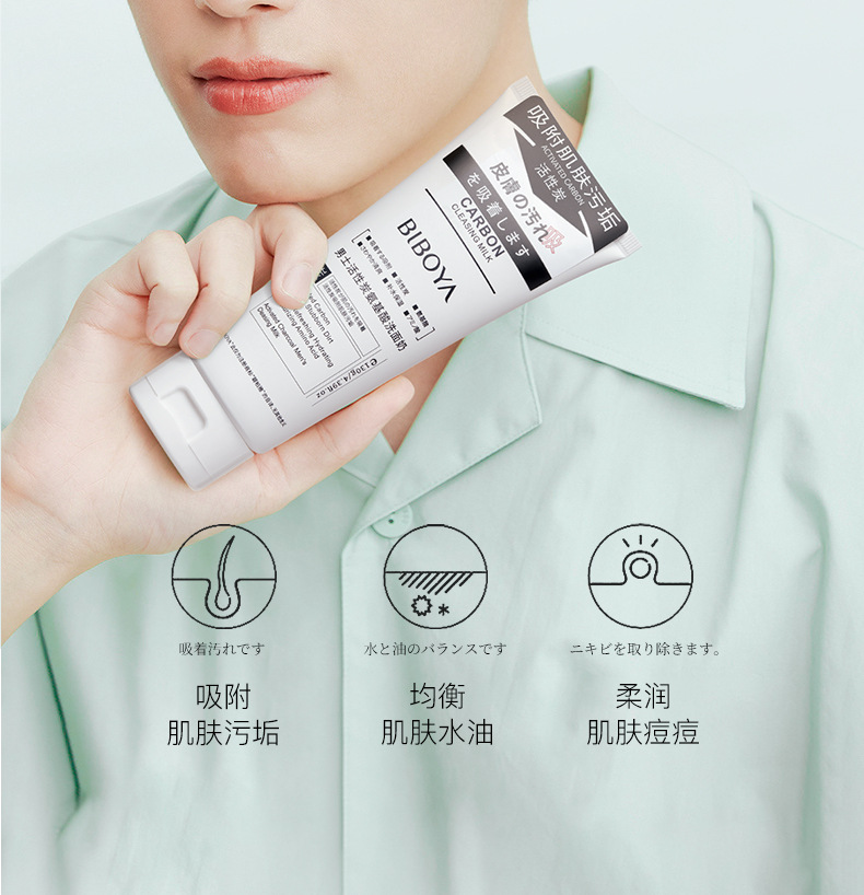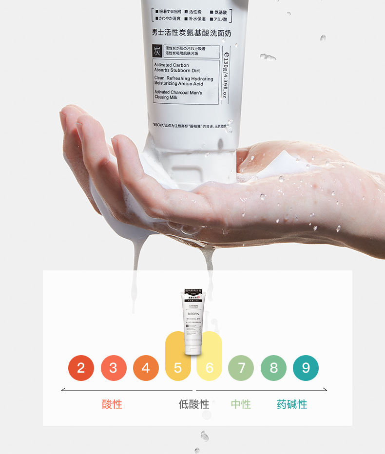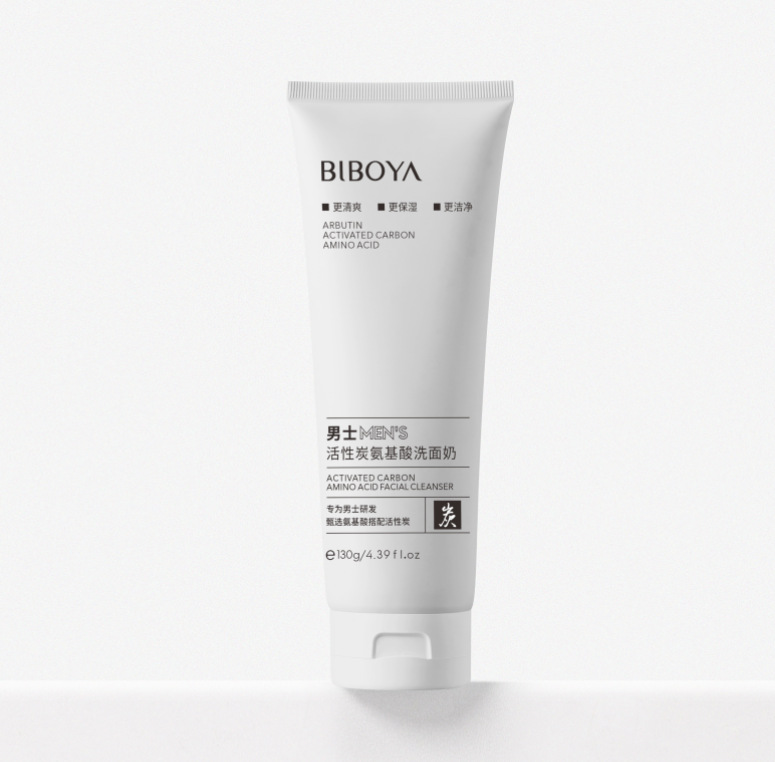 Bibaya мужское активированный уголь аминокислотное очищающее средство для лица 130g; Пенообразовательная сетка; Новая версия очищающего средства для лица Bibeya Men с активированным углем и аминокислотами, 130 г
