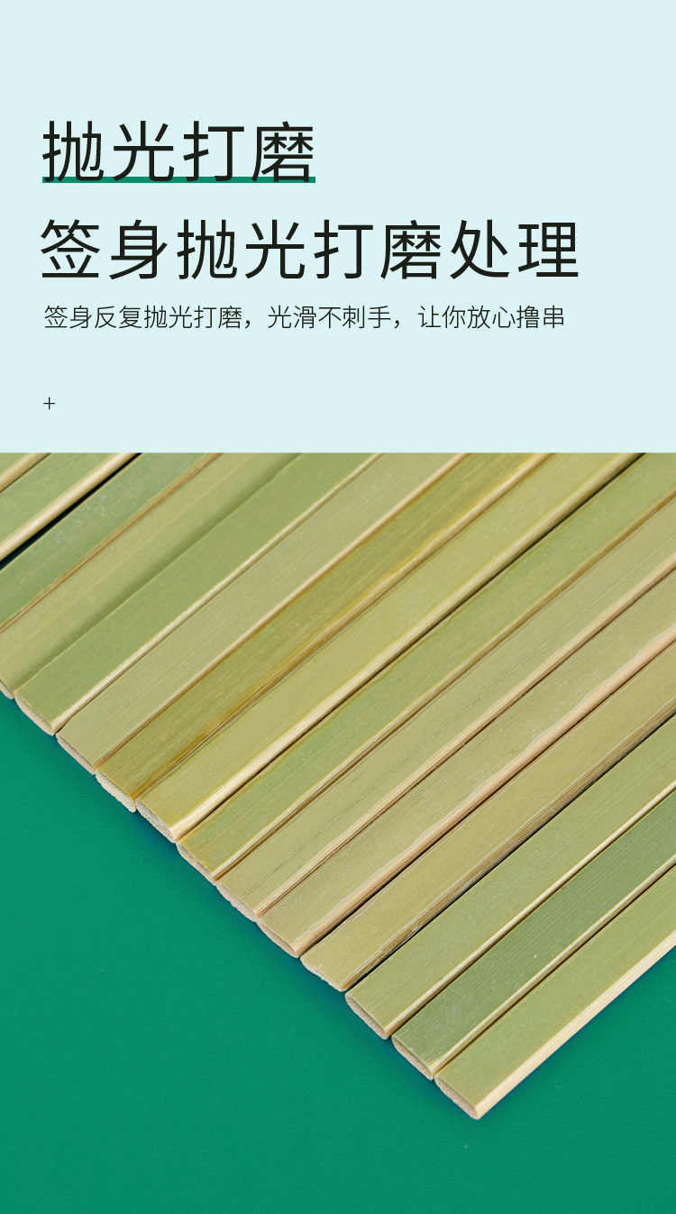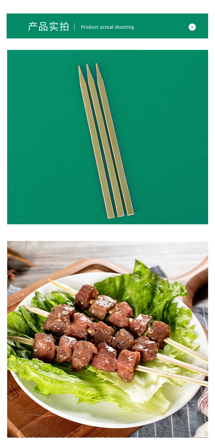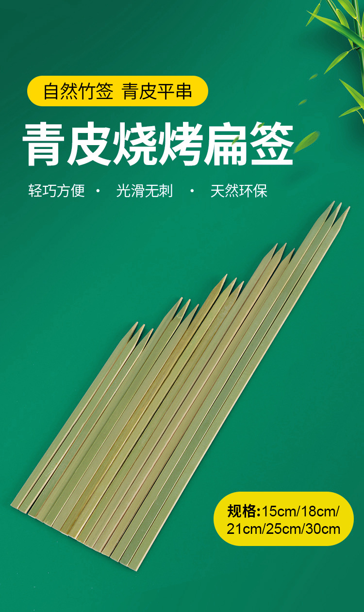Бамбуковые палочки с зеленой кожей в японском стиле Горящий птичий уголь Жареная струна Приготовление пищи Плоские палочки Твердые коммерческие одноразовые колбасы для барбекю Бамбуковые палочки