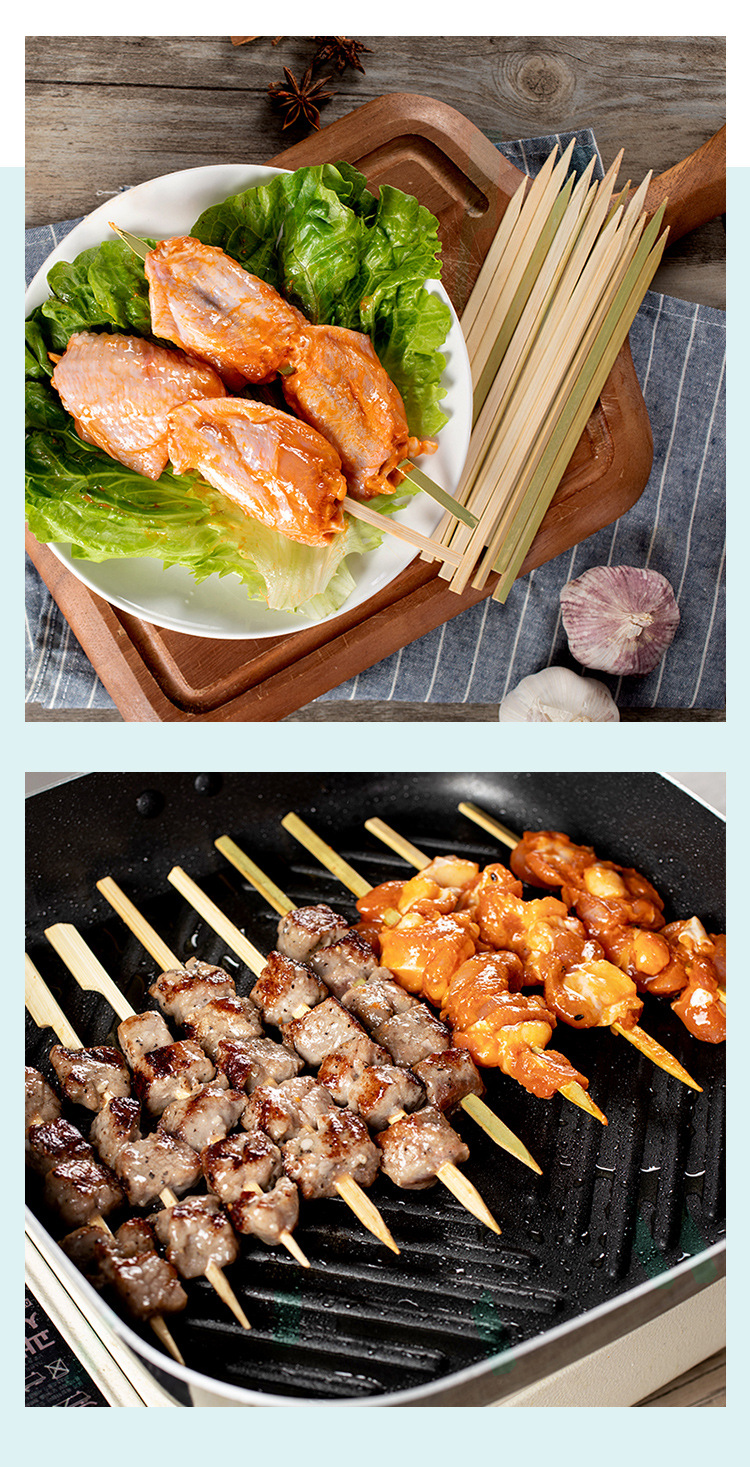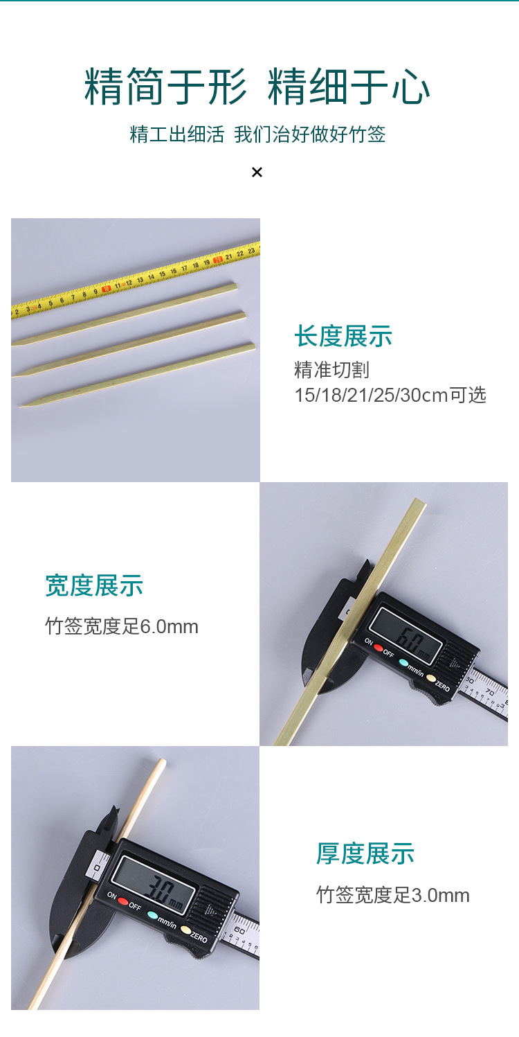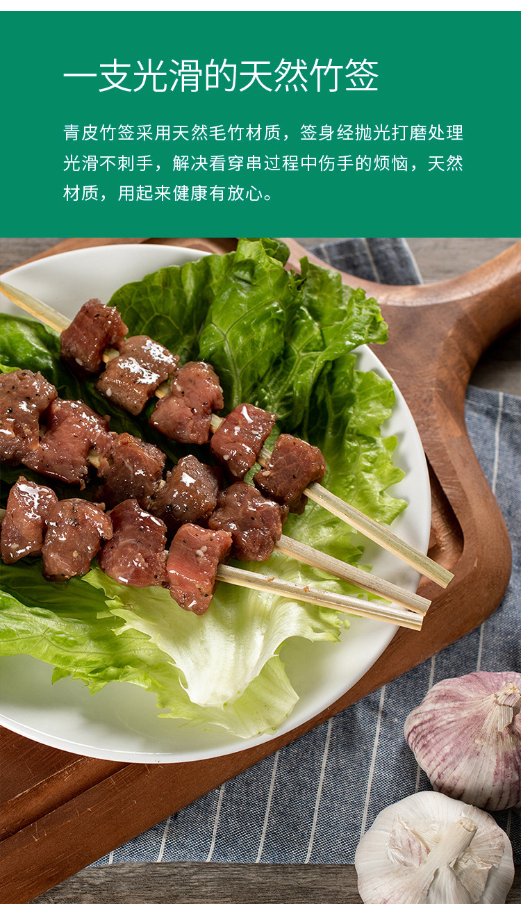 Бамбуковые палочки с зеленой кожей в японском стиле Горящий птичий уголь Жареная струна Приготовление пищи Плоские палочки Твердые коммерческие одноразовые колбасы для барбекю Бамбуковые палочки