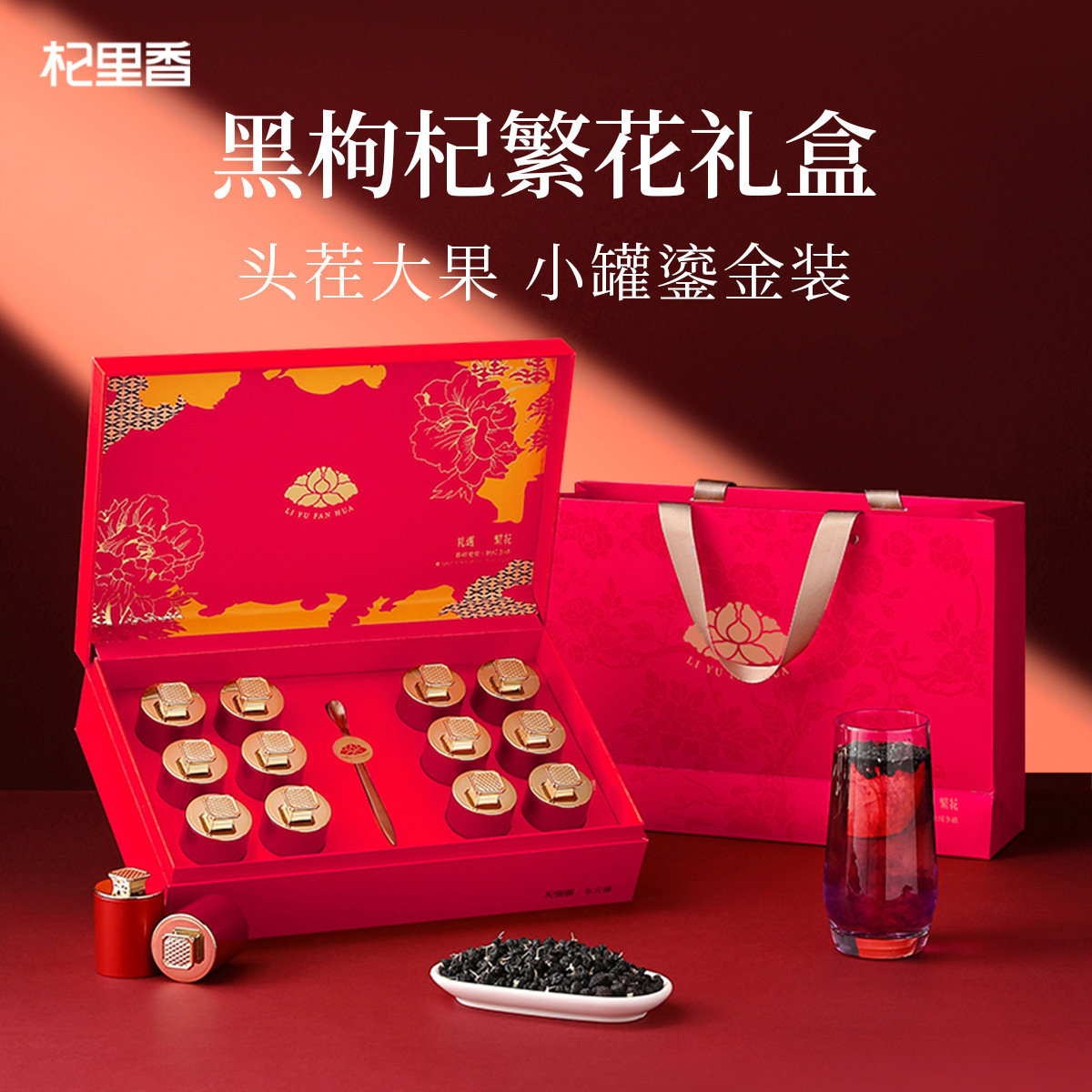 Черные ягоды годжи Qili Xiang Qinghai первого урожая, 120 г, подарочная коробка к Новому году, крупные сушеные ягоды годжи, 15 маленьких баночек для чая