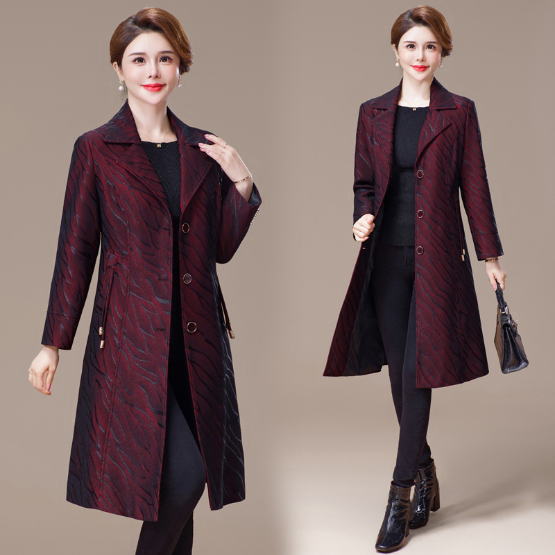 2023 длинное ветровка для матери среднего возраста Весна и осень Новый свободный костюм для тещи больших размеров 200 кг