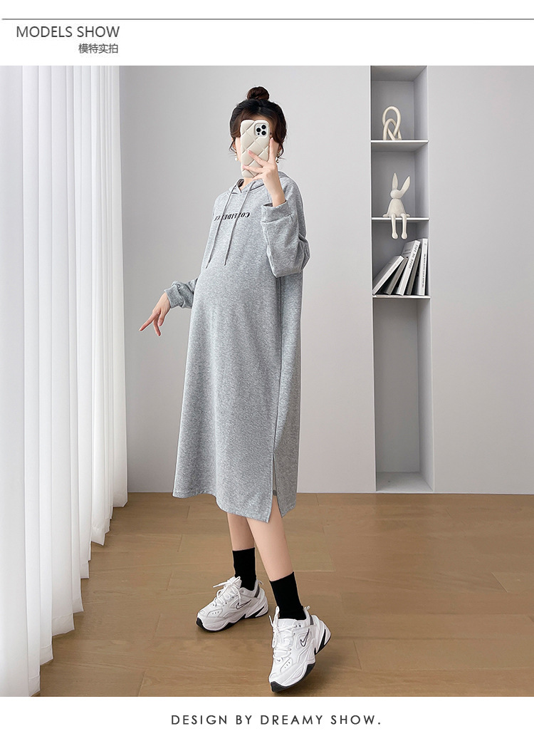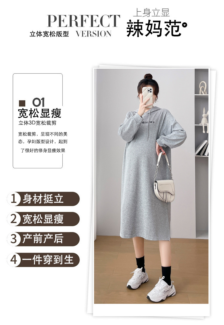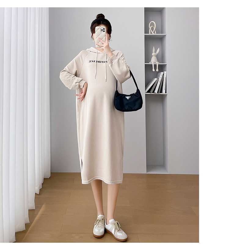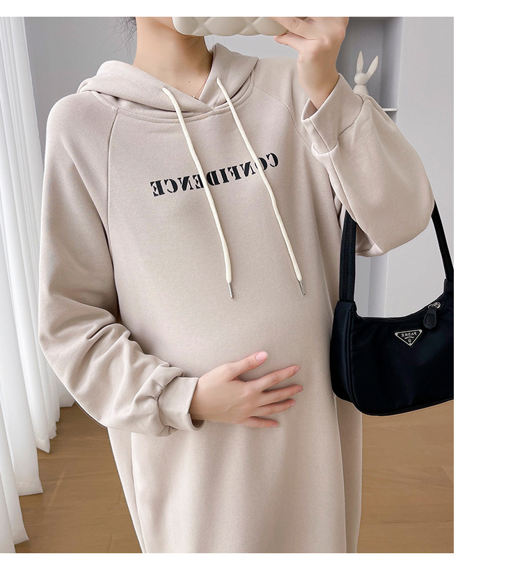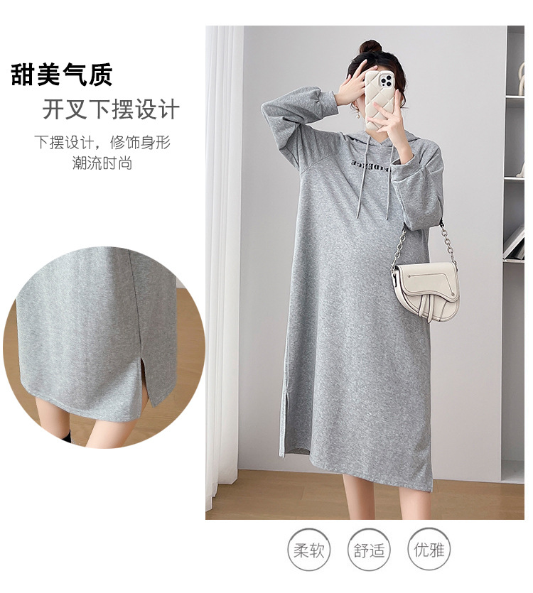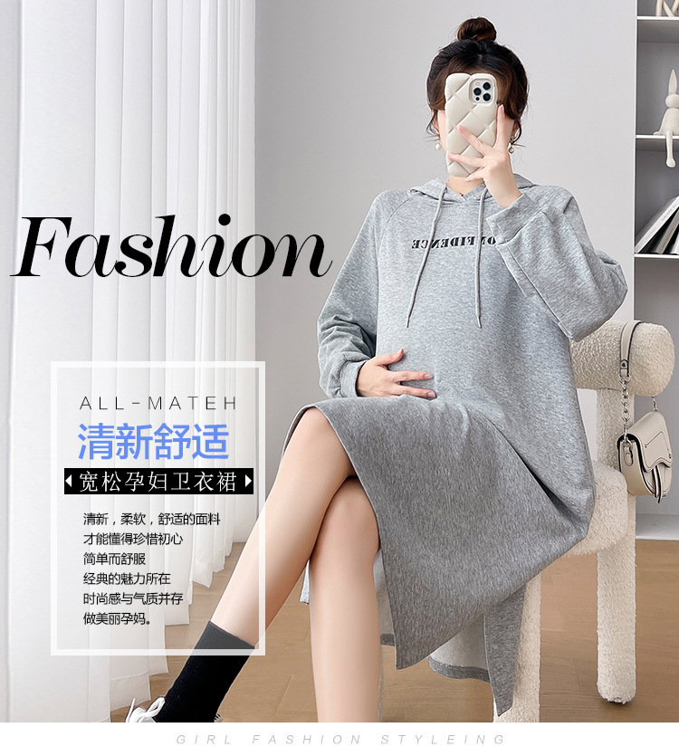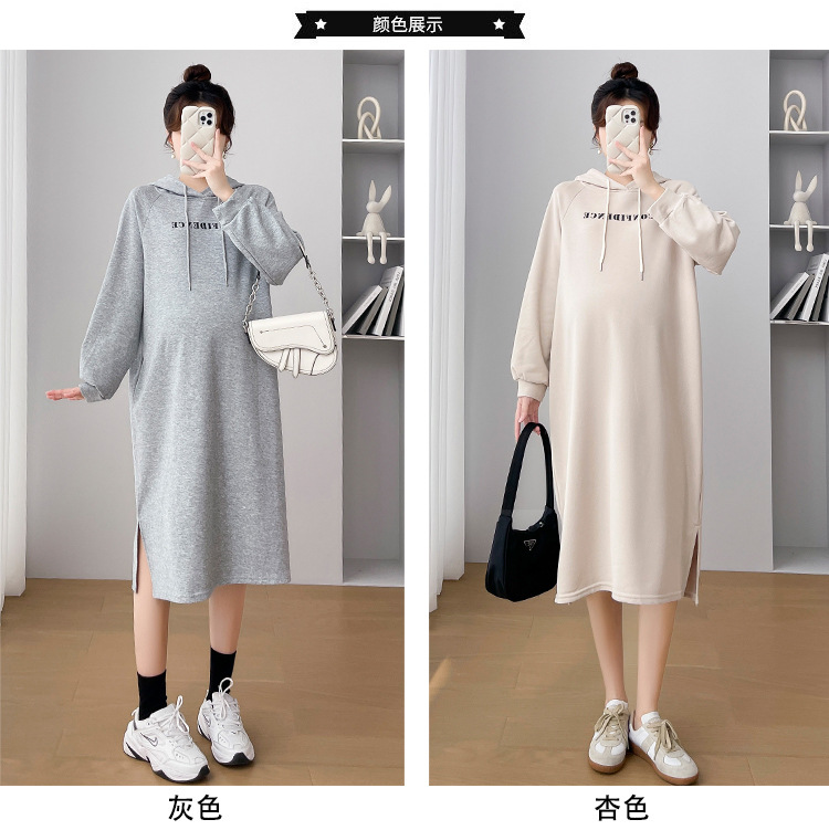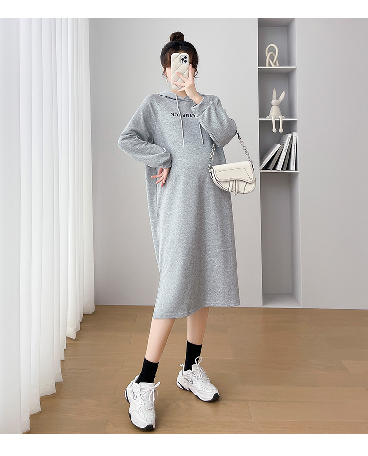 Платье для беременных 2023 Новое осеннее свободное платье с капюшоном в Корейском стиле Модное платье для беременных Платье для беременных