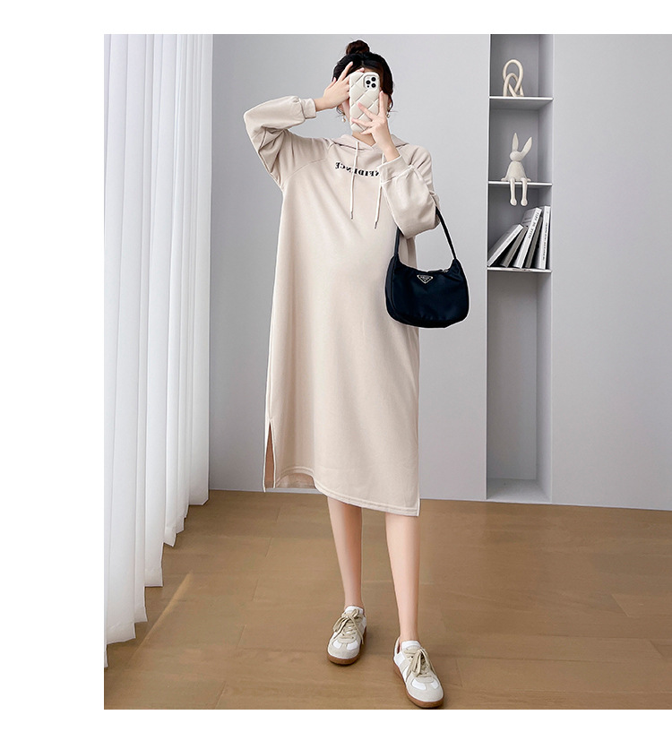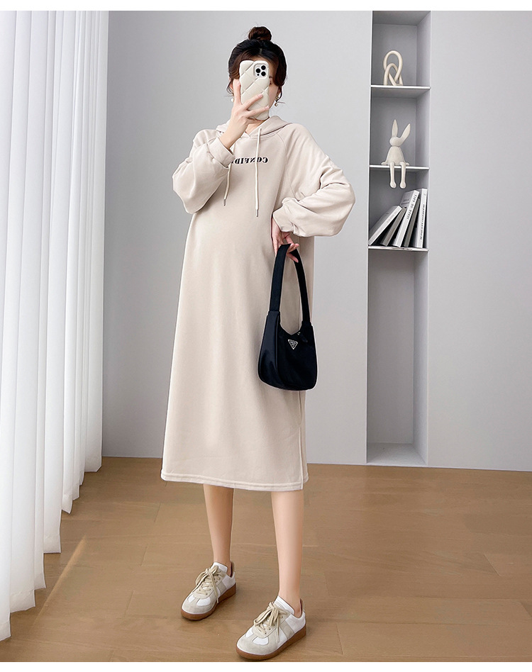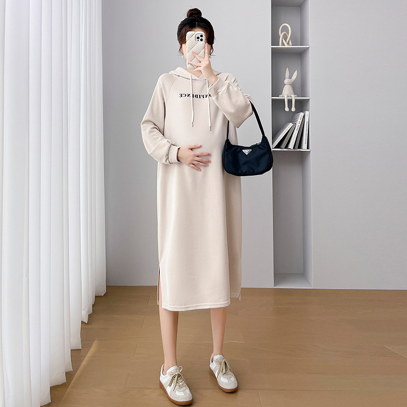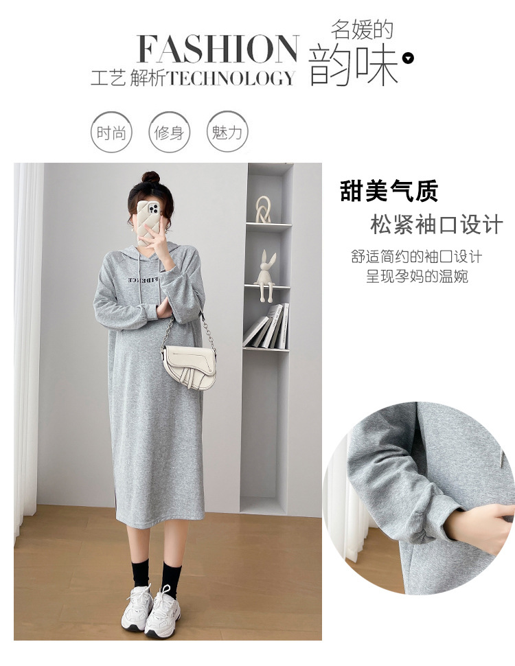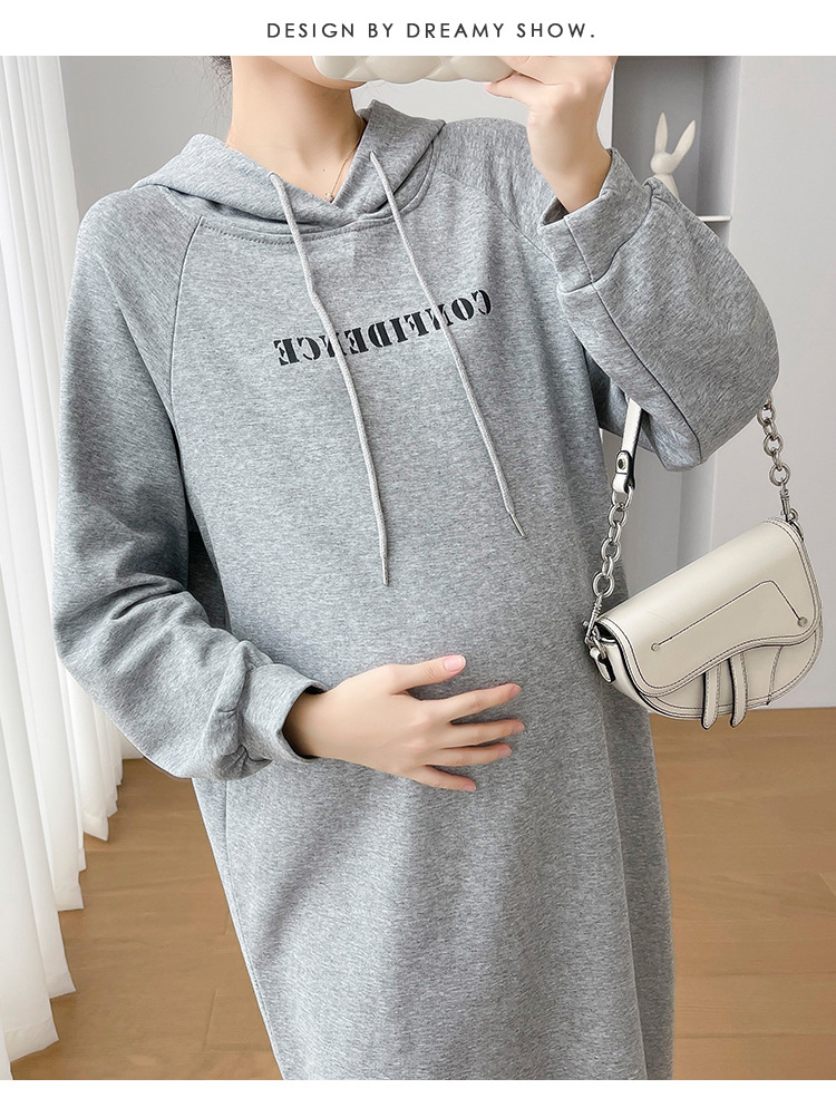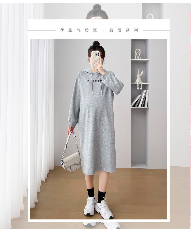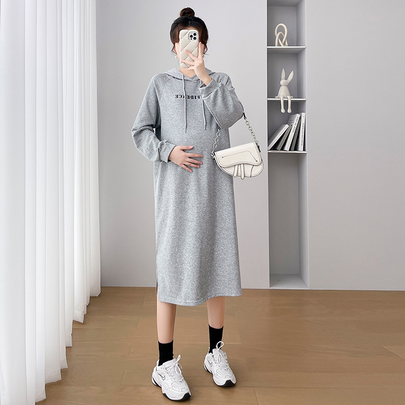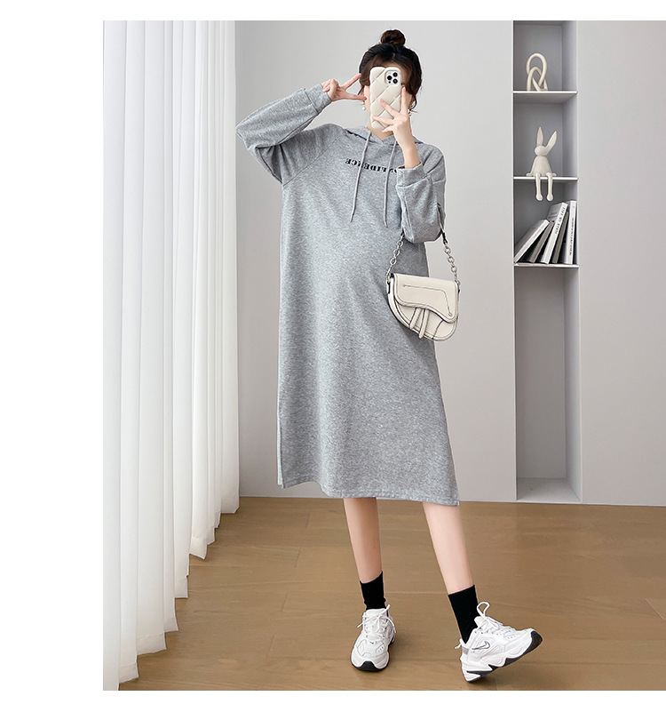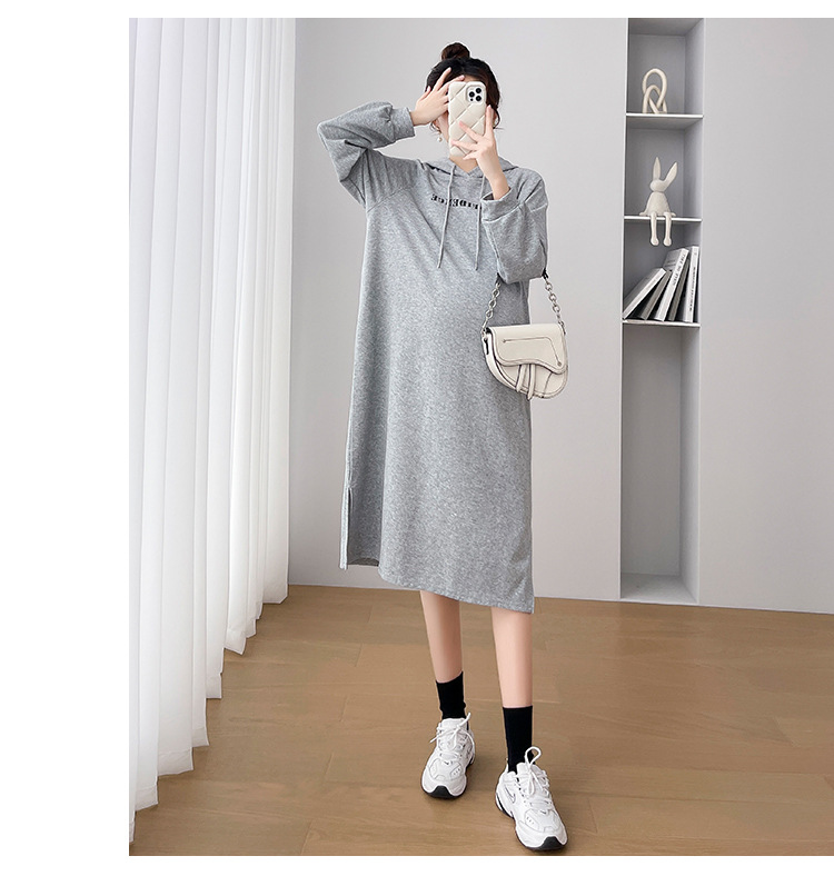 Платье для беременных 2023 Новое осеннее свободное платье с капюшоном в Корейском стиле Модное платье для беременных Платье для беременных