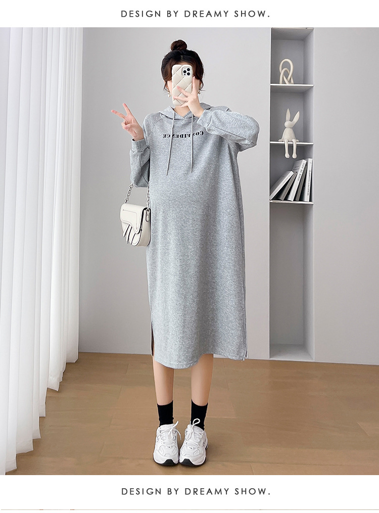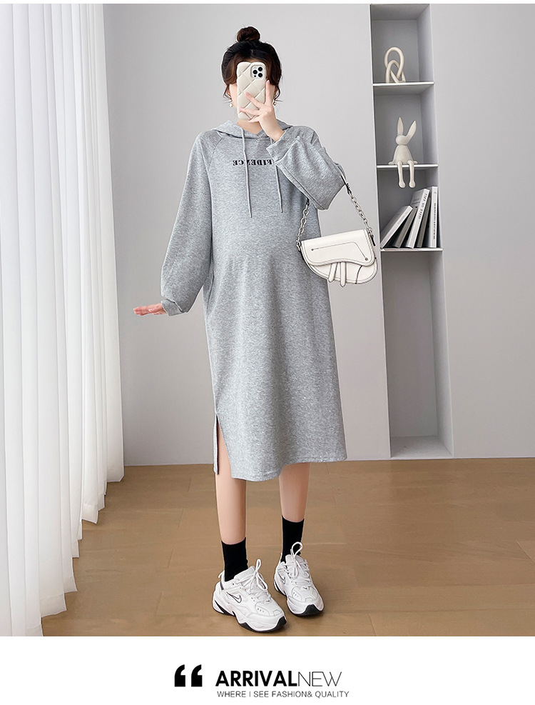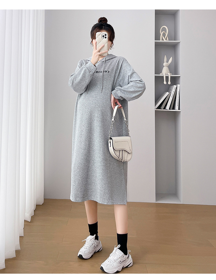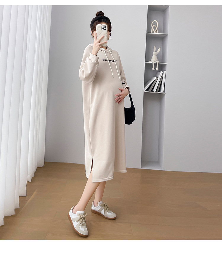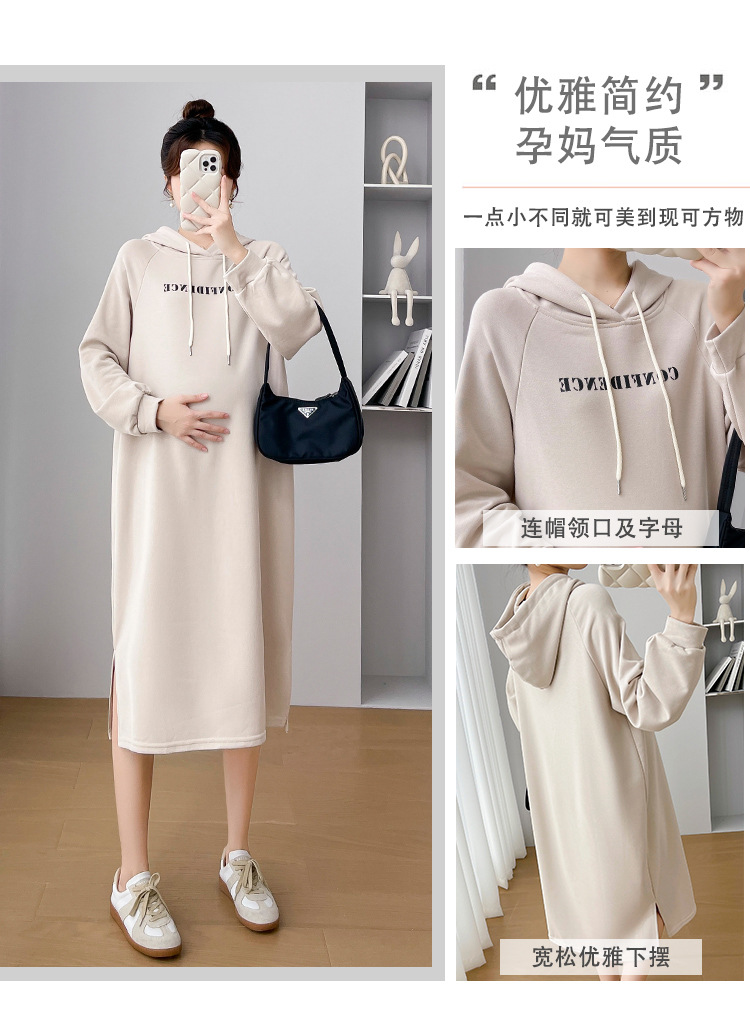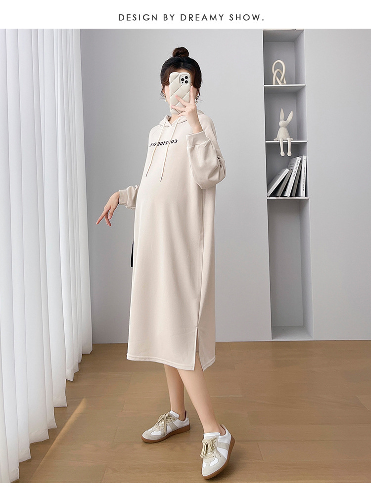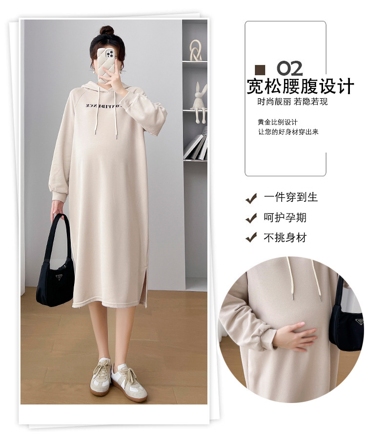 Платье для беременных 2023 Новое осеннее свободное платье с капюшоном в Корейском стиле Модное платье для беременных Платье для беременных