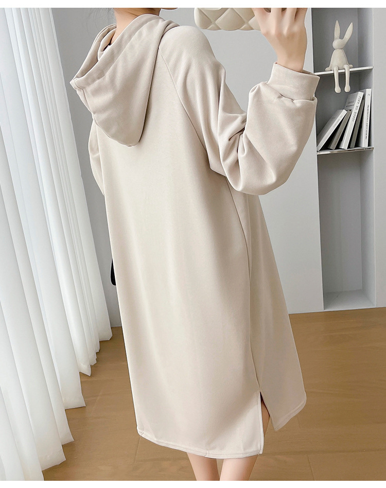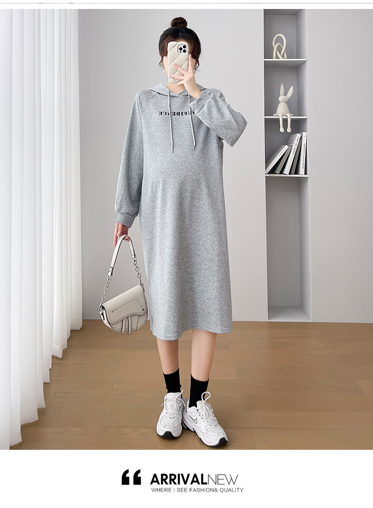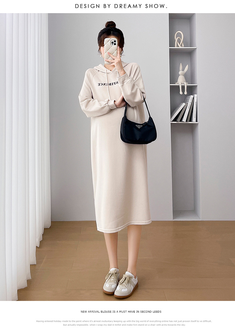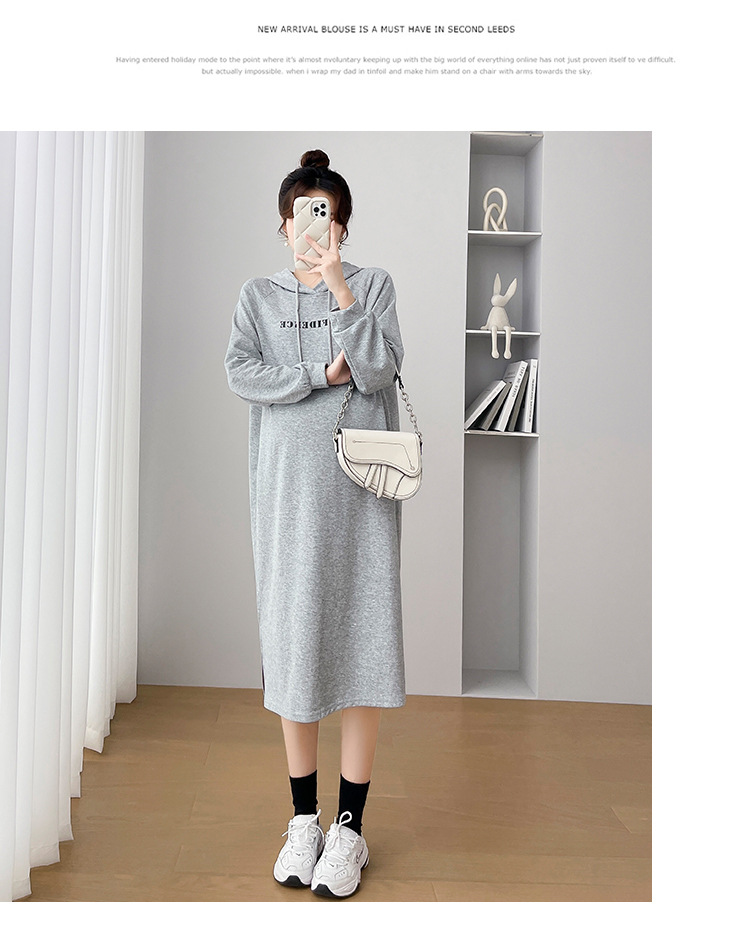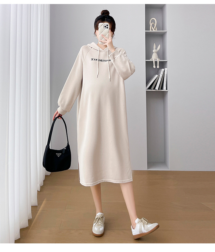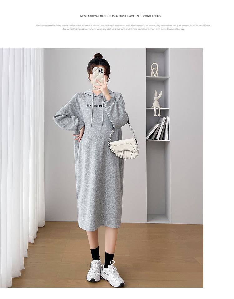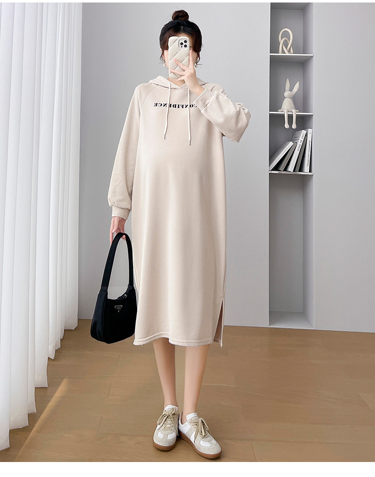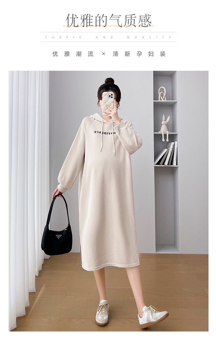 Платье для беременных 2023 Новое осеннее свободное платье с капюшоном в Корейском стиле Модное платье для беременных Платье для беременных