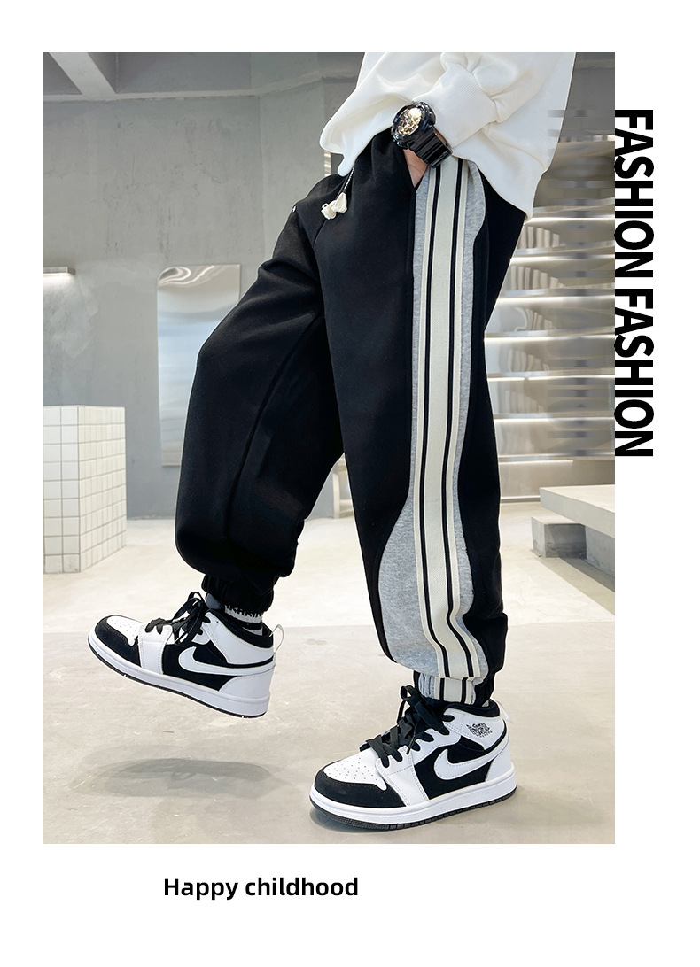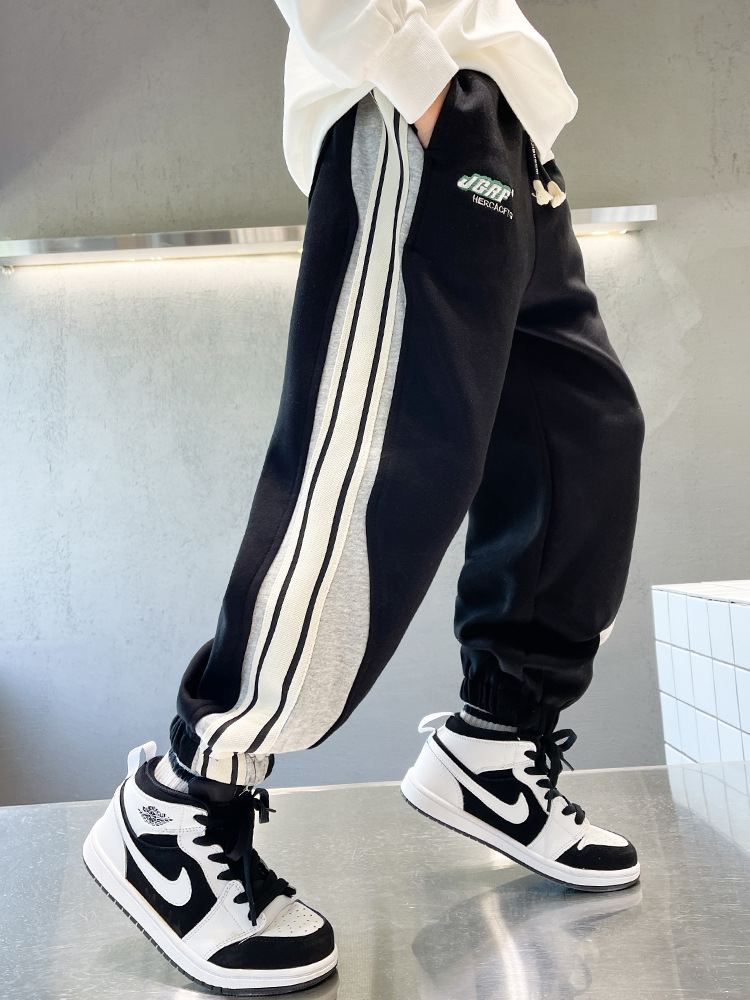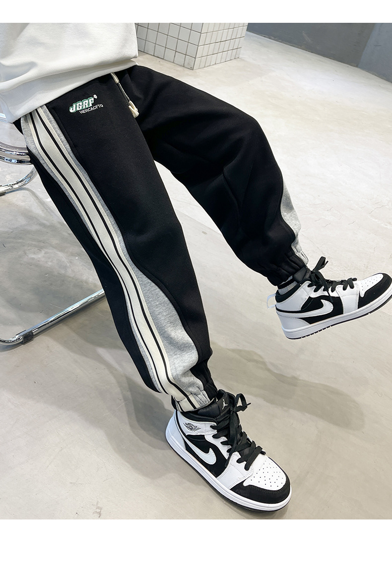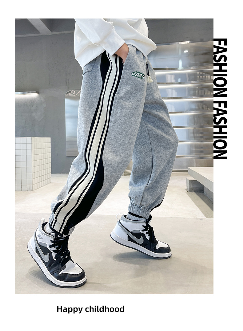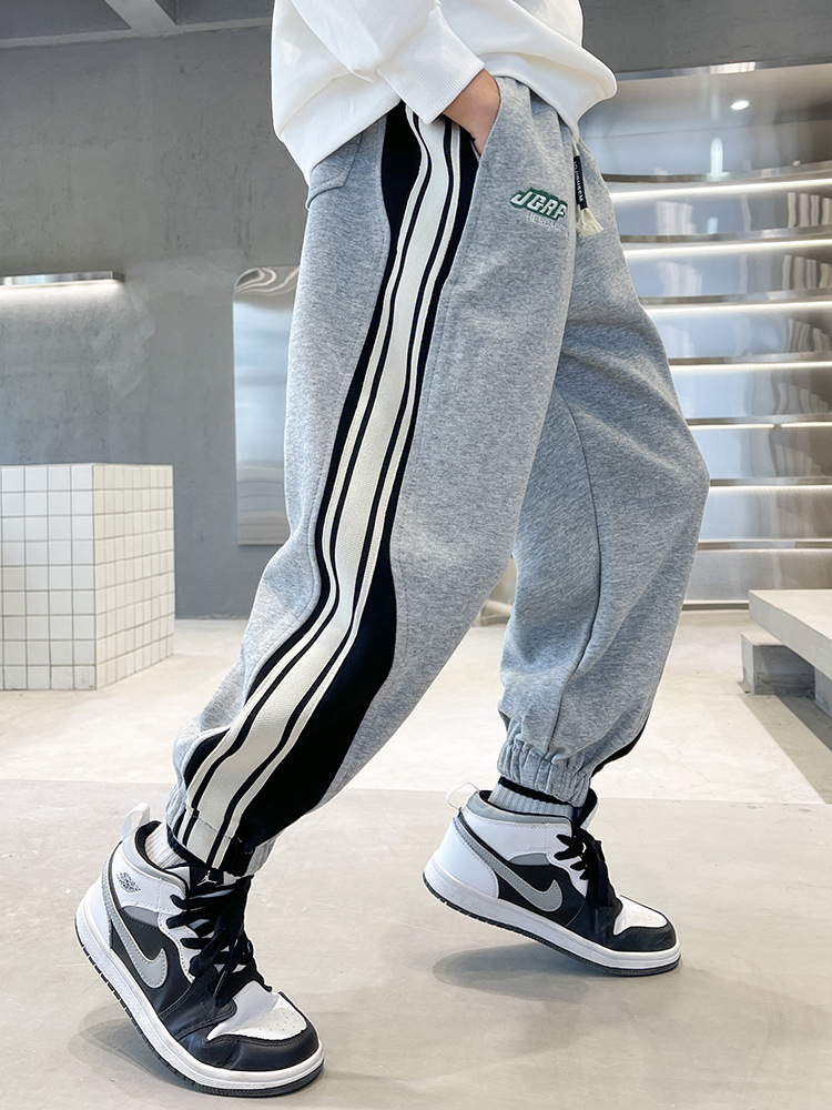 Брюки для мальчиков осень-зима 2023 новые большие детские спортивные штаны для отдыха, Индивидуальные детские бархатные штаны оптом